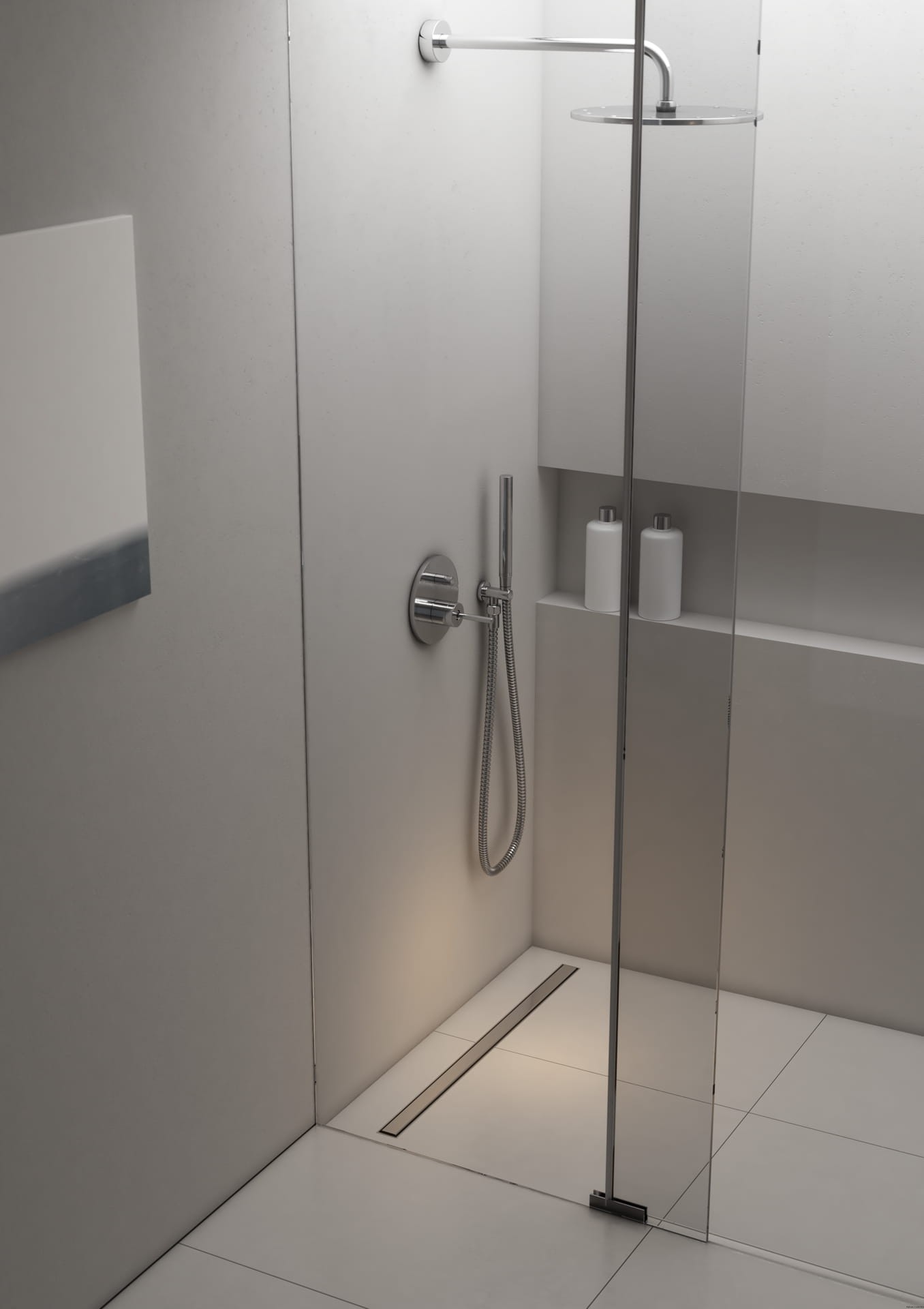 - Woda tylko tam, gdzie potrzebna – Zadbaliśmy o to, aby Twoja łazienka pozostała sucha i bezpieczna, nawet gdy korzystasz z silnego strumienia wody! To możliwe dzięki odpowiednim spadom konstrukcyjnym i zastosowaniu specjalnej, hydroszczelnej maty.