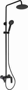 Deszczownica Wykończenie: nero bateria: Tak Regulowana wysokość górnej deszczowni: Tak Regulacja wysokości drążka od [mm]: 1100 Regulacja wysokości drążka do [mm]: 1450 Głowica natryskowa Kształt: okrągły Materiał: stal nierdzewna Średnica [mm]: 250 Anti-calc: Tak Ilość funkcji: 1 Rodzaje strumienia: deszczowy słuchawki Ilość funkcji: 1 Anti-calc: Tak Rodzaje strumienia: deszczowy Węże Długość [mm]: 1500 Materiał oplotu: PVC Anti-twist: 2 wylewki Rodzaj wylewki: stała Przełącznik funkcji Typ przełącznika: mechaniczny ceramiczny Bateria Rodzaj baterii: jednouchwytowa, mieszaczowa