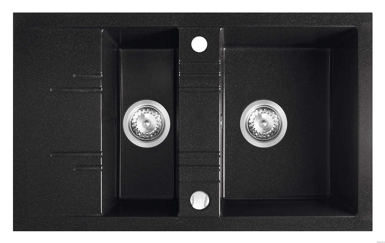 Elegancki zlewozmywak granitowy o prostokątnej formie doskonale wpisze się w nowocześnie i klasycznie urządzone kuchenne wnętrza. Z grafitową barwą świetnie będą współgrać błyszczące, metalowe akcesoria oraz chromowana bateria o ciekawej linii wzorniczej. Zlewozmywak odznacza się również wyjątkowymi walorami funkcjonalnymi. Jest niezwykle trwały i odporny na uszkodzenia, a także łatwy w utrzymaniu czystości. Dwie praktyczne komory zapewnią nam komfortowe zmywanie. Posiada syfon z możliwością podłączenia odpływu zmywarki lub pralki oraz automatyczny korek z pokrętłem. Przydatną cechą jest odwracalność, czyli możliwość wyboru pozycji komory i ociekacza – z lewej lub prawej strony. Gwarancja użytkowania zlewozmywaka wynosi aż 15 lat.