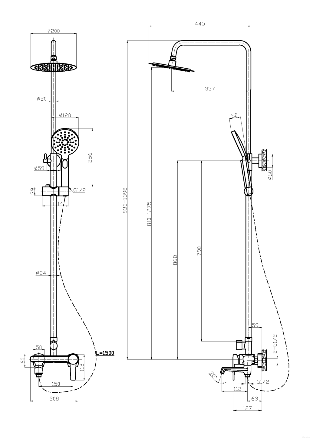 - Kolumna natryskowa o regulowanej wysokości - od 94 do 138 cm