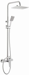 Deszczownica Tubo składa się z baterii, głowicy natryskowej, drążka, słuchawki i węża. Bateria została wykonana z trwałego mosiądzu, co gwarantuje jej długowieczność i odporność na korozję. Jest to model jednouchwytowy mieszaczowy, co pozwala na łatwe i precyzyjne ustawienie temperatury oraz strumienia wody. Drążek deszczownicy wykonany jest z wysokiej jakości stali nierdzewnej, co zapewnia mu trwałość i odporność na działanie wilgoci. Głowica i słuchawka prysznicowa zostały wykonane z materiału ABS, który charakteryzuje się lekkością i wytrzymałością. Oba elementy wyposażone są w system Anti-calc, który ułatwia usuwanie osadów z kamienia, co znacznie wydłuża ich żywotność i poprawia komfort użytkowania. Całość zestawu wykończona jest w błyszczącym chromie, co nadaje deszczownicy elegancki wygląd i sprawia, że doskonale komponuje się z nowoczesnymi wnętrzami łazienkowymi.