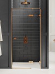 Model Avexa Copper Brushed posiada eleganckie detale w kolorze miedzi, o szczotkowanym wykończeniu. Drzwi prysznicowe wyposażone w bezpieczną, hartowaną szybę o grubości 6mm, z powłoką ochronną Active Shield. W dolnej części drzwi znajduje się rynienka, odprowadzająca wodę z szyby do wewnątrz strefy prysznicowej. Produkt może być instalowany z brodzikiem lub bez brodzika. Kolekcja objęta 7-letnim okresem gwarancji. Istnieje możliwość zamówienia produktu także w opcji na wymiar.