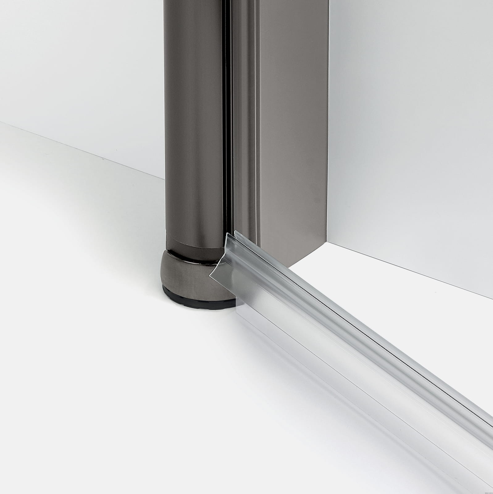 Model New Soleo Gunmetal Brushed posiada eleganckie, detale w kolorze gunmetal o szczotkowanym wykończeniu. Drzwi prysznicowe wyposażone w bezpieczną, hartowaną szybę o grubości 6mm, z powłoką ochronną Active Shield. Posiadają zawias kolumnowy, pozwalający uchylać drzwi na zewnątrz i do środka. Produkt może być instalowany z brodzikiem lub bez brodzika. Kolekcja objęta 3-letnim okresem gwarancji. Istnieje możliwość zamówienia produktu także w opcji na wymiar.