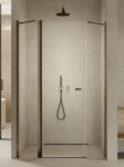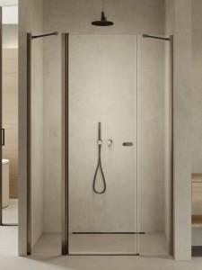 Model New Soleo Gunmetal Brushed wyróżnia się eleganckimi detalami w kolorze gunmetal z szczotkowaną powierzchnią. Prysznicowe drzwi z ukośnym wspornikiem wyposażono w 6mm bezpieczne, hartowane szkło z ochronną powłoką Active Shield 2.0. Posiadają zawias kolumnowy, umożliwiający otwieranie drzwi zarówno na zewnątrz, jak i do środka. Produkt można zamontować z brodzikiem lub bez. Kolekcja ma 3 lata gwarancji, a także możliwość zamówienia w niestandardowych wymiarach.