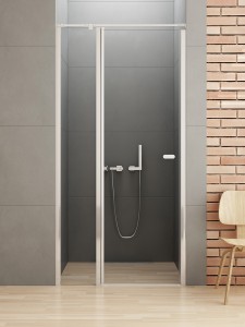 Model New Soleo cechuje się eleganckimi, chromowanymi detalami w błyszczącym wykończeniu. Drzwi prysznicowe z równoległym wspornikiem mają bezpieczne, hartowane szyby o grubości 6 mm z ochronną powłoką Active Shield 2.0. Wyposażone są w zawias kolumnowy, co umożliwia ich otwieranie na zewnątrz i do środka. Produkt może być montowany zarówno z brodzikiem, jak i bez niego. Kolekcja objęta jest 3-letnią gwarancją, a produkt można zamówić również w wersji na wymiar.