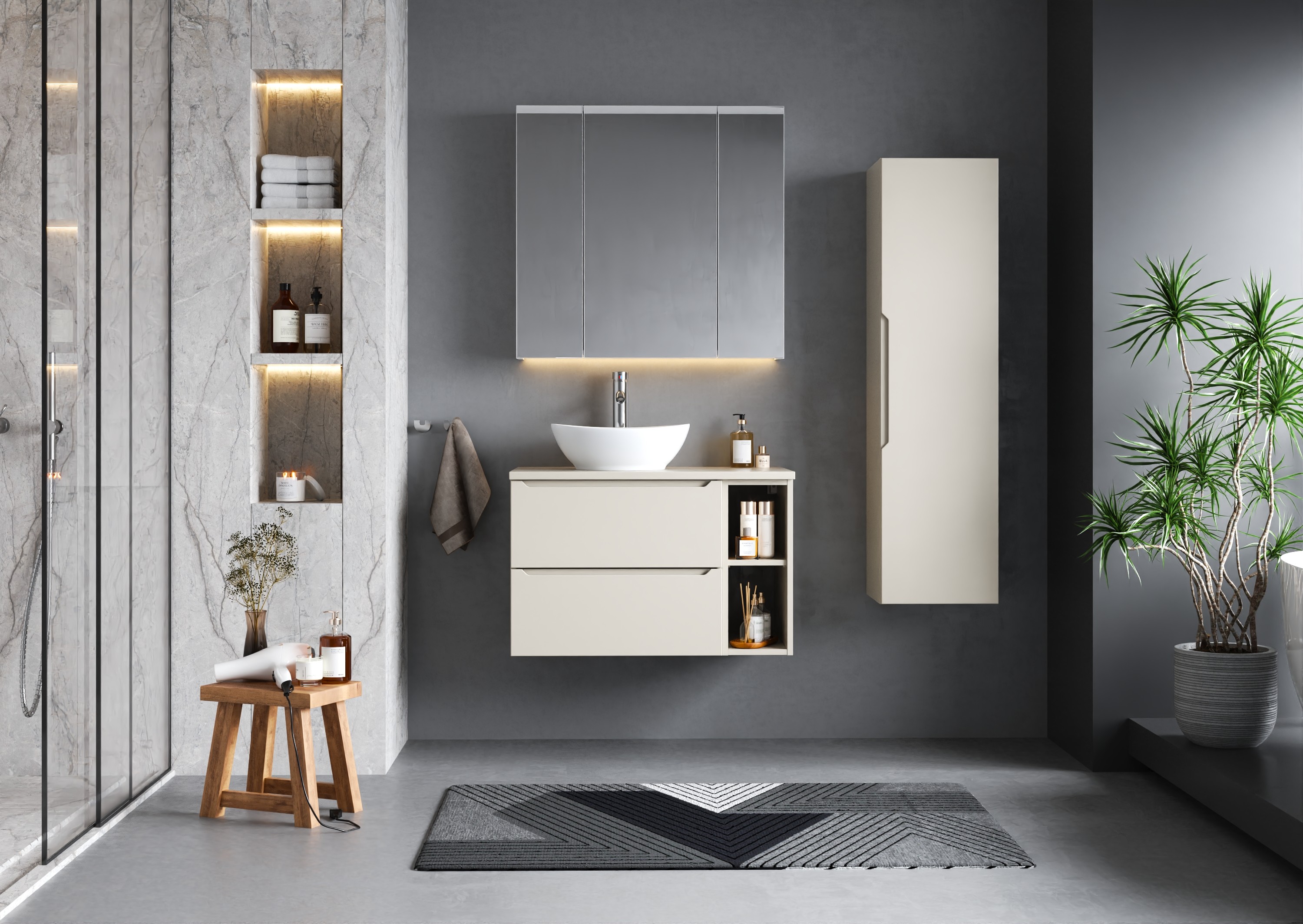 Model ETNA-03 o wysokości 130 cm zapewnia optymalne wykorzystanie przestrzeni w łazience. Trzy pojemne półki pozwalają na wygodne przechowywanie ręczników, kosmetyków i akcesoriów. Drzwi z cichym domykiem można zamontować zarówno po lewej, jak i po prawej stronie, co daje pełną swobodę aranżacyjną.