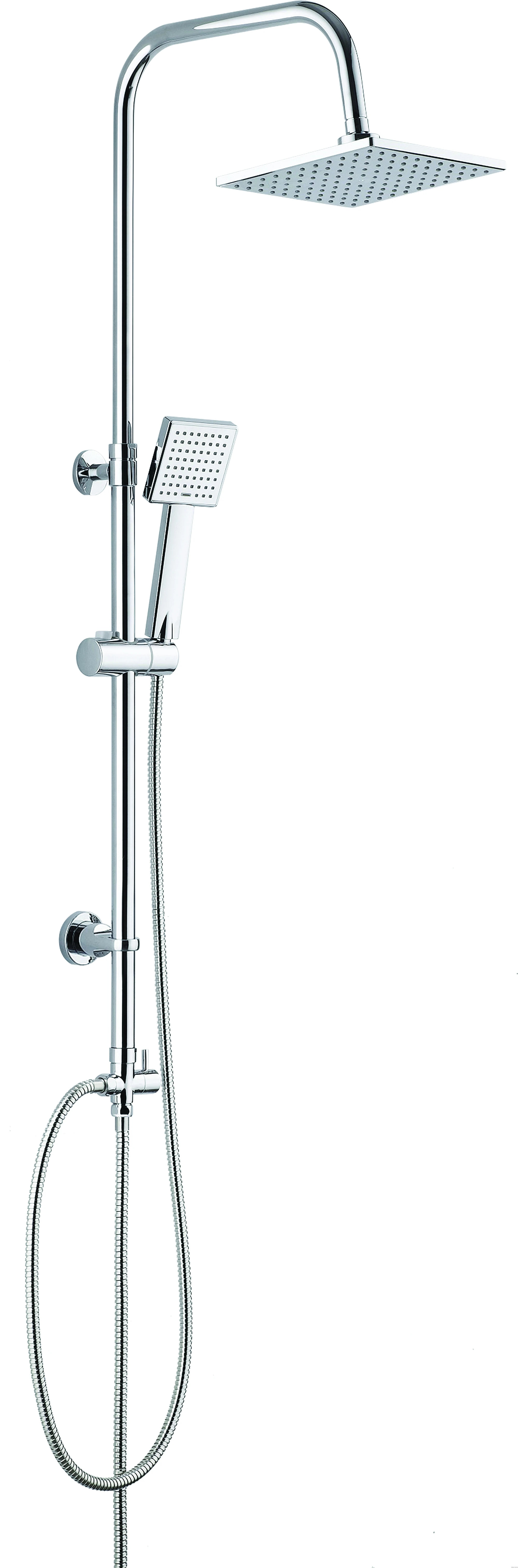 Deszczownica Floks wyróżnia się oryginalną, kwadratową głowicą i słuchawką, które wyposażone są w system Anti-clac i przyjemny deszczowy strumień. Drążek wykonany jest ze stali nierdzewnej i posiada regulowany kąt ustawienia słuchawki natryskowej. Całość wykończona jest w eleganckim, błyszczącym chromie. Mechaniczny, ceramiczny przełącznik funkcji umożliwia zmianę wypływu strumienia wody między głowicą a słuchawką, nawet przy niskim ciśnieniu. Deszczownicę możemy zamontować do baterii wannowej lub prysznicowej.