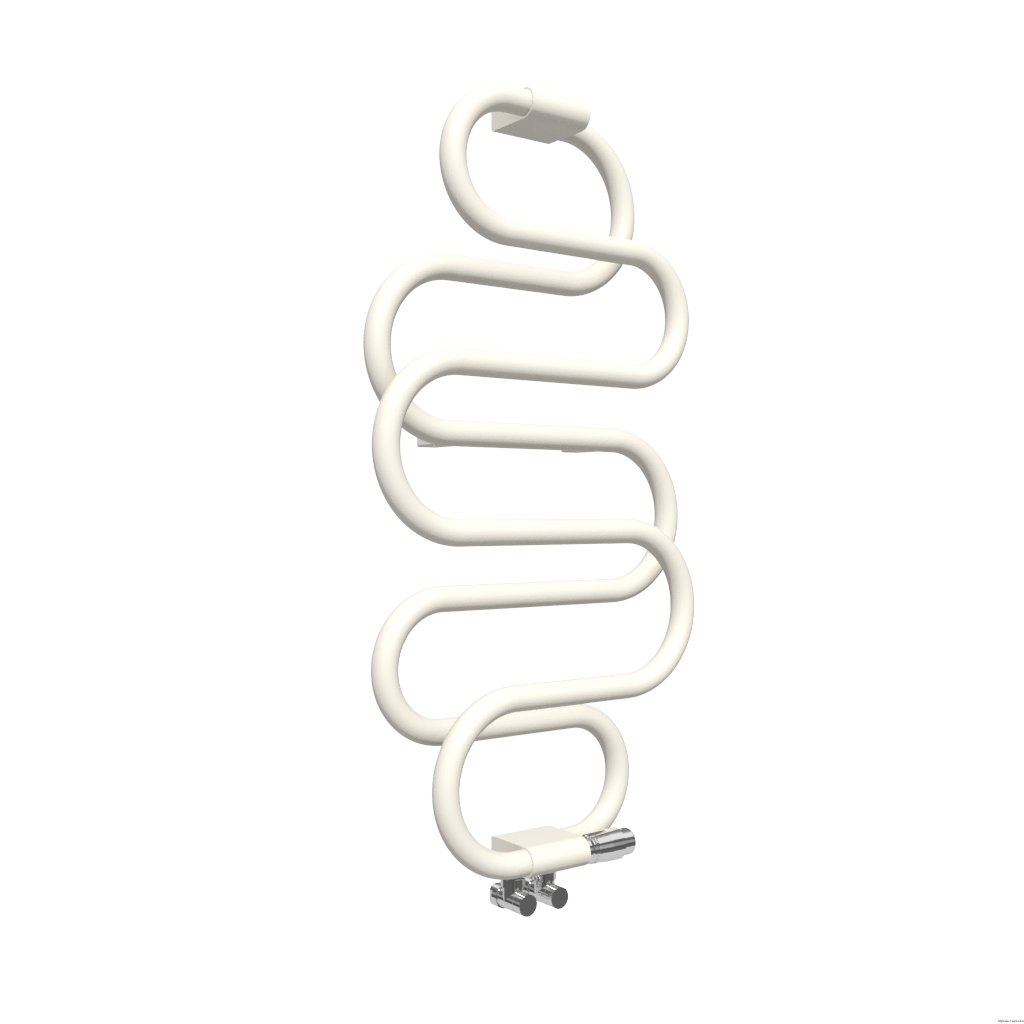 Gięta okrągła rura tworzy oryginalną elegancką bryłę, która pięknie dopełni wnętrza salonów kąpielowych. Perła dostępna jest w wersji malowanej proszkowo oraz w powłoce chromowej. Grzejnik dostępny w wersji wodnej i elektrycznej (Perła E). Wymiary grzejnika w mm, wysokość: 960, szerokość: 500. Podłączenie typu: ZX . Kolor: RAL 9010