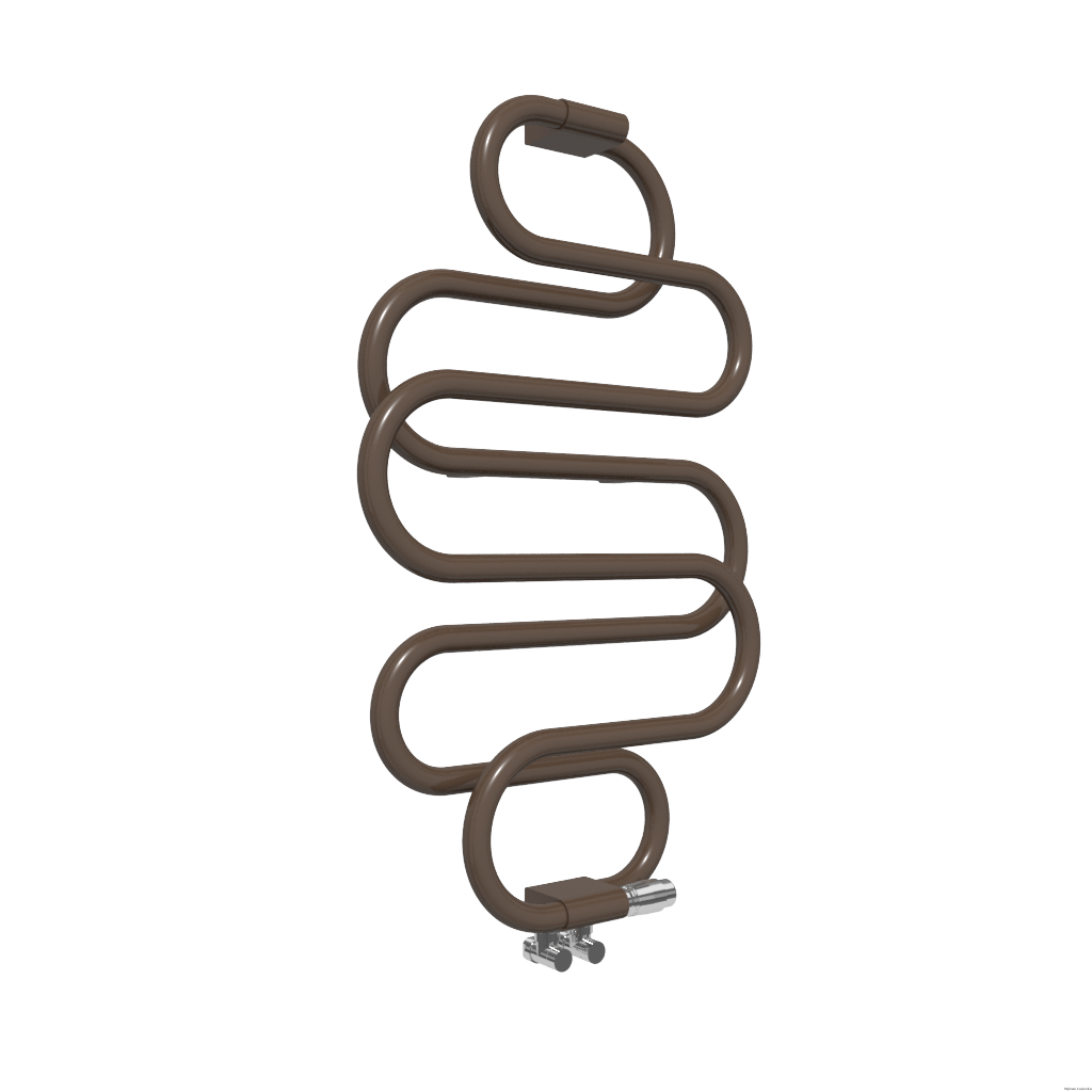 Gięta okrągła rura tworzy oryginalną elegancką bryłę, która pięknie dopełni wnętrza salonów kąpielowych. Perła dostępna jest w wersji malowanej proszkowo oraz w powłoce chromowej. Grzejnik dostępny w wersji wodnej i elektrycznej (Perła E). Wymiary grzejnika w mm, wysokość: 960, szerokość: 600. Podłączenie typu: ZX . Kolor: Noble Brown