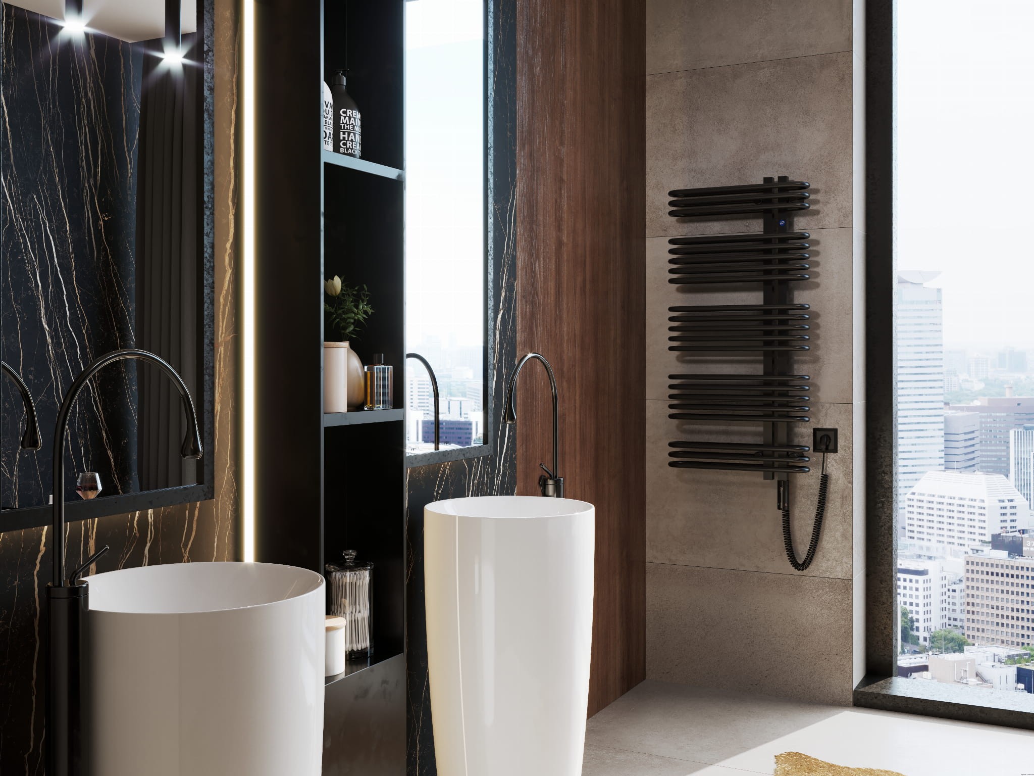 ASTRO ELECTRO to oryginalny, asymetryczny grzejnik elektryczny. Cechuje go podwójny rząd okrągłych rurek, które odpowiadają za zwiększoną moc grzewczą i jednocześnie nadają produktowi modny wygląd. W jego przypadku design oznacza też użyteczność. Grzejnik jest gwarancją komfortu cieplnego i wygodnego suszenia nawet kilku dużych ręczników. Wyposażony w grzałkę elektryczną działa przez cały rok, dając Ci niezależność od sezonu grzewczego. Dobrze współgra z nowoczesnymi rozwiązaniami w domu, dopełniając ich działanie, na przykład z pompą ciepła i ogrzewaniem podłogowym.