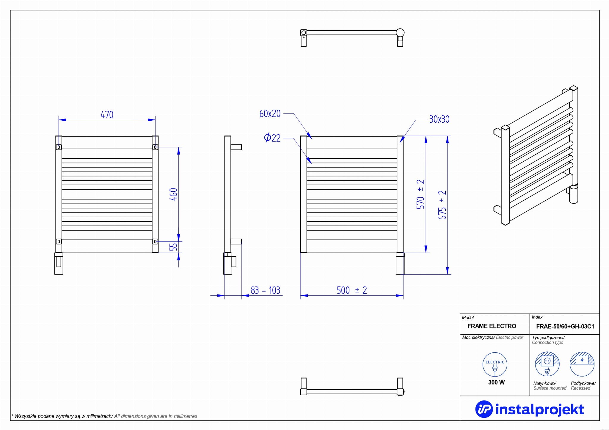 Grzejnik elektryczny Instal Projekt Frame Electro biały połysk/white silk 50x60 cm FRAE-50/60+GH-03C1