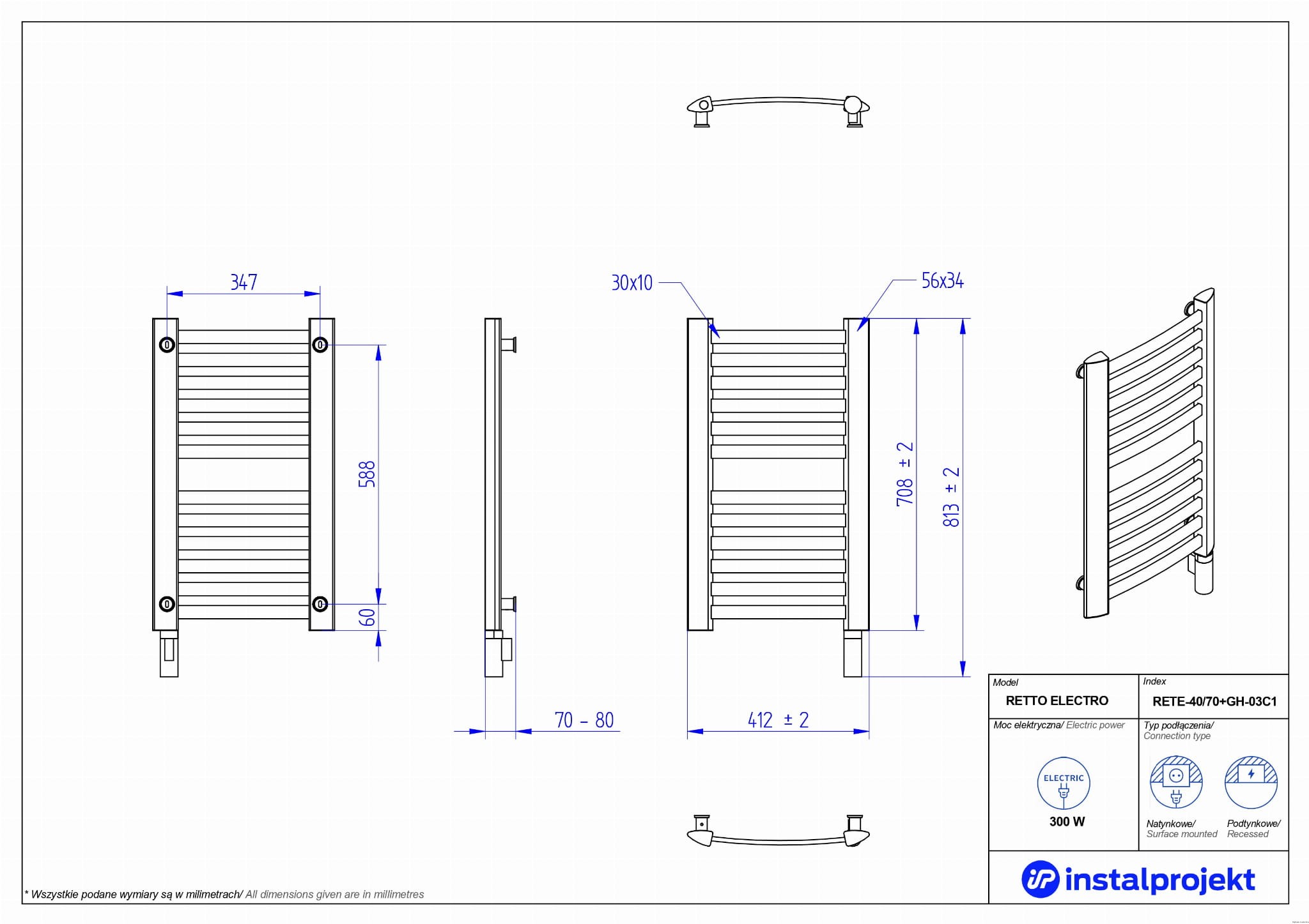 Producent Instal-ProjektGrzejnik elektryczny Instal Projekt Belti Electro czarny mat/black mat 40x80 cm BELE-40/80C31+GH-03C2