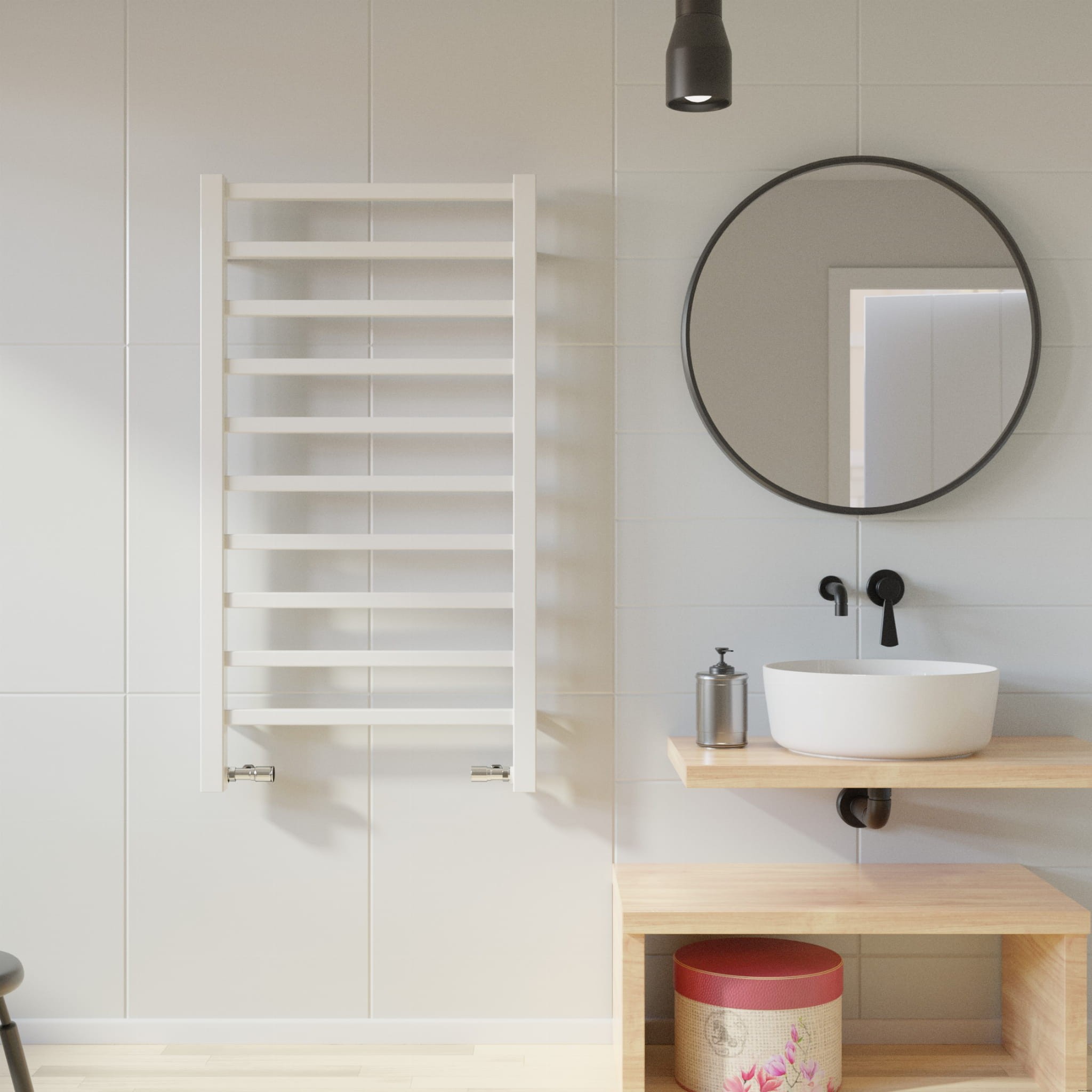 Począwszy od jego wymiarów - 430 mm szerokości i 790 mm wysokości - każdy centymetr został precyzyjnie zaprojektowany, by zagwarantować maksymalną efektywność i komfort. Grzejnik ten nie tylko pasuje do najwęższych przestrzeni, ale także stanowi centralny punkt Twojej łazienki, nadając jej wyjątkowy charakter. Szerokość 430 mm sprawia, że możesz swobodnie umieścić go na dowolnej wolnej przestrzeni, bez ryzyka zagracenia pomieszczenia.