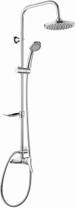 Deszczownica Wykończenie: chrom bateria: Tak Regulacja wysokości drążka od [mm]: 950 Drążek Materiał: stal nierdzewna Głowica natryskowa Kształt: okrągły Materiał: ABS Średnica [mm]: 200 Anti-calc: Tak Ilość funkcji: 1 Rodzaje strumienia: deszczowy słuchawki Ilość funkcji: 5 Rodzaje strumienia: deszczowy, hydromasaż, 2 x mieszany, mgiełka wodna Węże Długość [mm]: 1500 Rodzaj oplotu: podwójnie pleciony Materiał oplotu: stal nierdzewna Przełącznik funkcji Typ przełącznika: mechaniczny Bateria Rodzaj baterii: jednouchwytowa, mieszaczowa