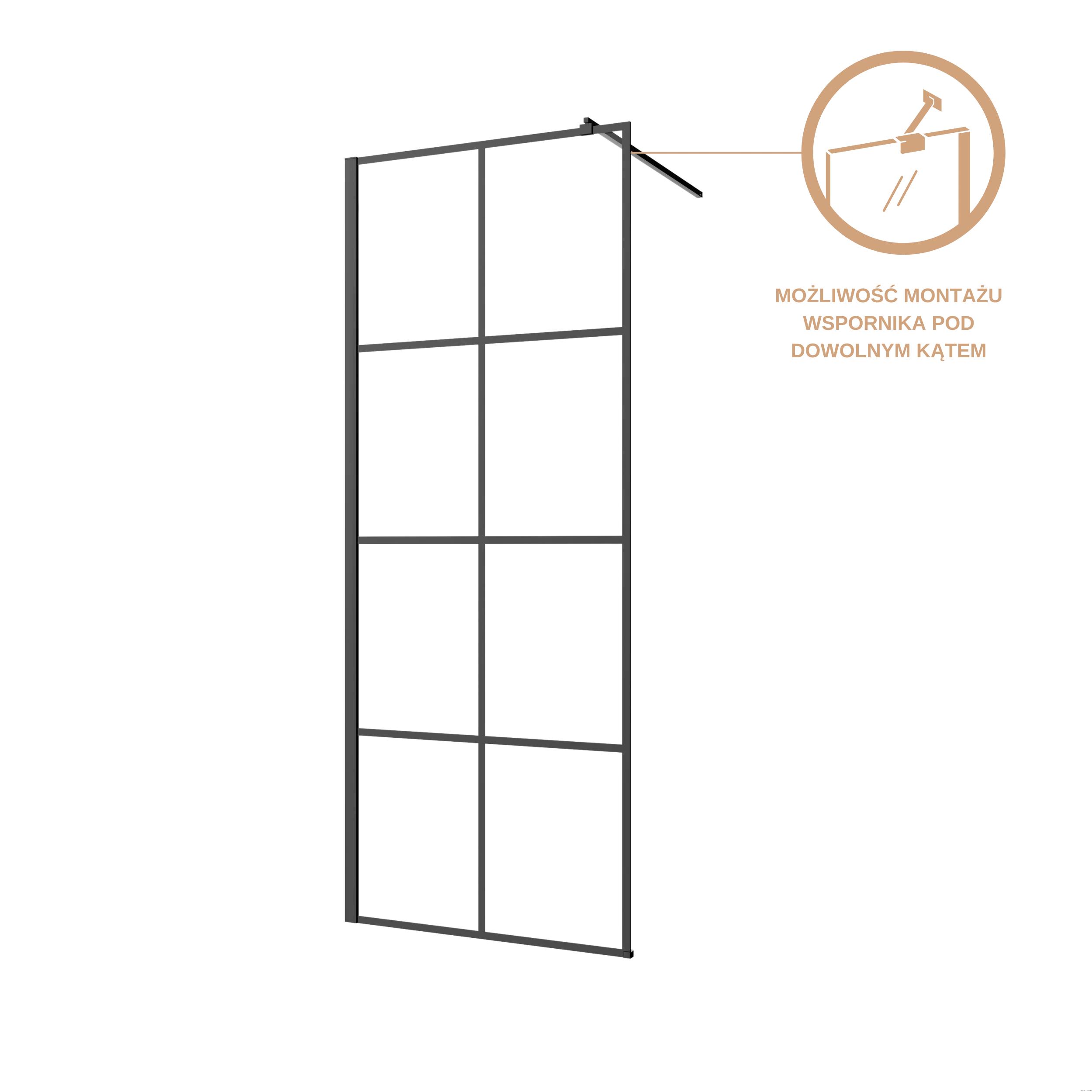 Wprowadź do swojej łazienki industrialny szyk dzięki naszej ściance prysznicowej typu walk-in, której unikalne geometryczne szkło z czarną kratką stanowi wyjątkowy element dekoracyjny. Ta stylowa kabina, zaprojektowana z myślą o miłośnikach stylu loftowego, łączy w sobie surowość i elegancję, tworząc niepowtarzalną atmosferę w Twojej łazience. Cechy kabiny walk-in Invena: Szkło geometryczne z czarną kratką: Hartowane szkło o grubości 8 mm z charakterystycznym podziałem czarną kratką dodaje wnętrzu industrialnego charakteru, jednocześnie wprowadzając elegancki i nowoczesny akcent. Powłoka Shiny-Glass zapewnia łatwe czyszczenie i minimalizuje osadzanie się kamienia. Teleskopowy profil regulowany: Możliwość regulacji głębokości kabiny w zakresie od 70 do 120 cm oraz montaż pod dowolnym kątem umożliwiają idealne dopasowanie do przestrzeni łazienkowej, niezależnie od jej kształtu i rozmiaru. Czarny profil aluminiowy: Solidna, jednoczęściowa konstrukcja z czarnym profilem nie tylko zapewnia trwałość, ale również podkreśla loftowy charakter kabiny. System łatwego montażu i możliwość niwelacji nierówności ściany do 2 cm gwarantują prostą instalację. Uniwersalność montażu: Kabinę można zainstalować jako wersję prawą lub lewą, a także na brodziku lub bezpośrednio na płytkach, co daje pełną swobodę aranżacyjną. Wysokość kabiny: 200 cm Dostępne szerokości: 80 cm, 90 cm, 100 cm, 110 cm, 120 cm Nasza ścianka prysznicowa walk-in z czarną kratką to doskonały wybór dla wszystkich, którzy pragną wprowadzić do swojej łazienki surowy, industrialny styl z nutą elegancji. Dzięki wysokiej jakości materiałom i przemyślanej konstrukcji, ta kabina nie tylko pięknie się prezentuje, ale również gwarantuje trwałość i komfort użytkowania na lata. Wybierz nowoczesny design i wyjątkowy styl dla swojej łazienki!