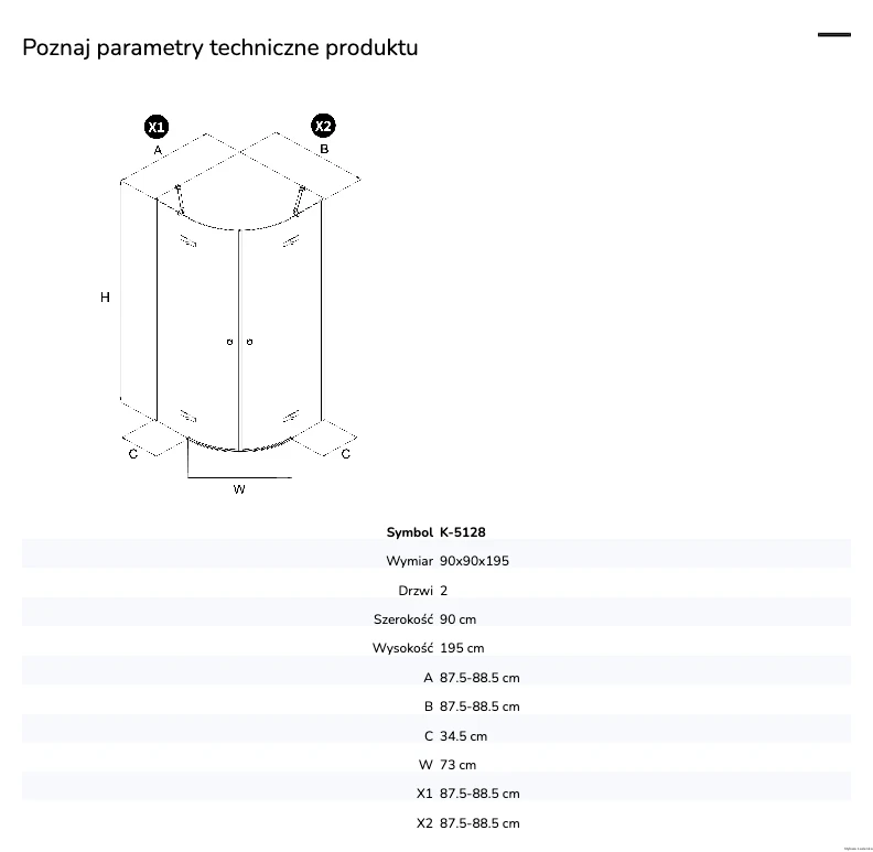 - Wymiar katalogowy: 90x90x195