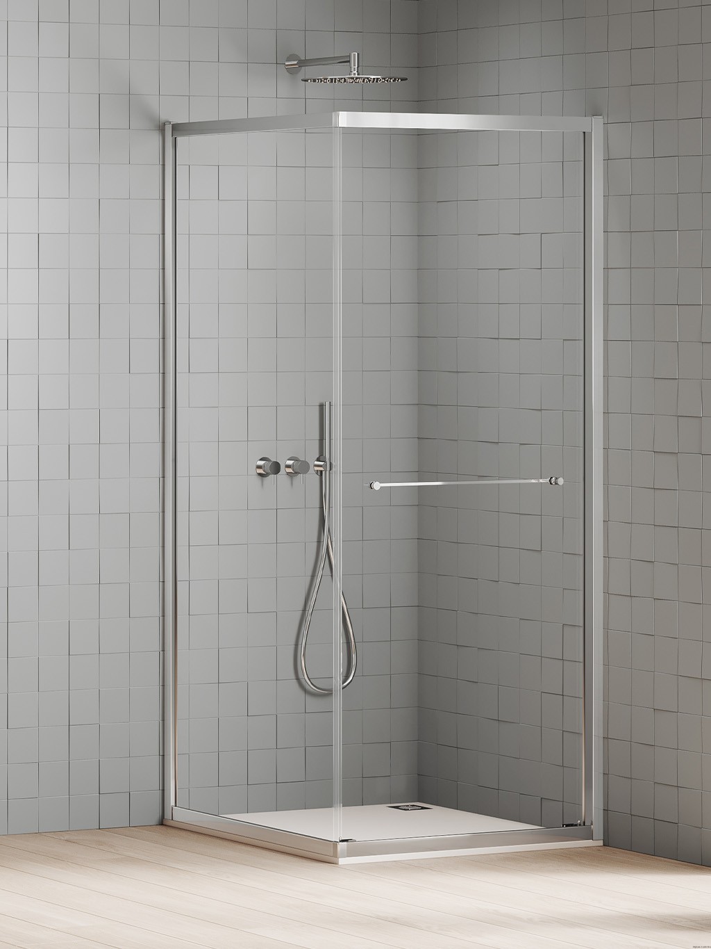 Nowy system otwierania drzwi linii New Varia zwiększa swobodę aranżacyjną łazienki. Możliwość otwierania drzwi na prawą lub lewą stronę pozwala lepiej wykorzystać przestrzeń wokół strefy prysznica. Rozwiązanie zapewnia szerokie, wygodne wejście i ułatwia dopasowanie kabiny do indywidualnego układu wnętrza.