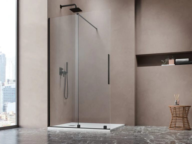 Kabina prysznicowa W1 140 lewy Milo 8 Walk-In jednoczęściowy, kolor: Czarny matowy firmy Vixor nr kat: N05-51738-54-01L, N05-80694-00-01