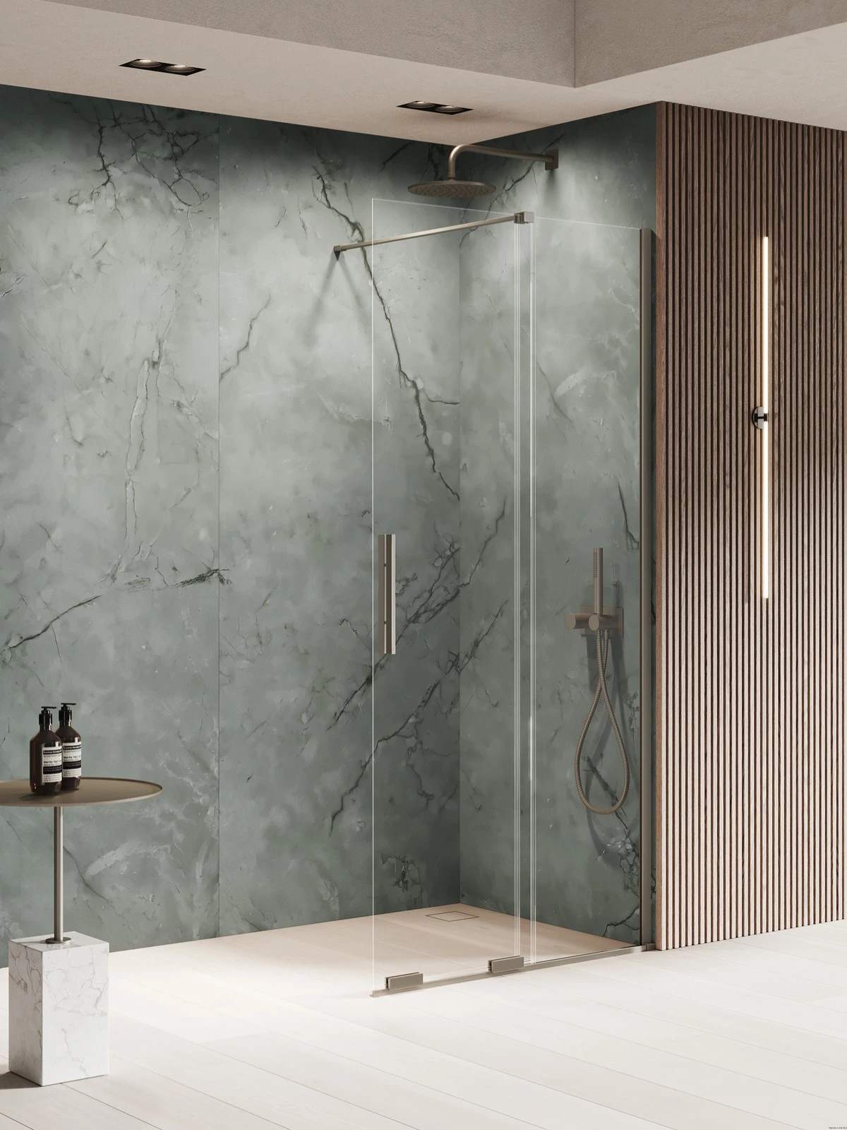 Model Smart Gunmetal Brushed cechuje się eleganckimi detalami w kolorze gunmetal z szczotkowanym wykończeniem. Kabiny prysznicowe typu walk in posiadają dwie, 8mm hartowane szyby z powłoką ochronną Active Shield. Model walk in z tej kolekcji ma system umożliwiający przesuwanie jednej z szyb. Mechanizm umieszczony jest w dolnej części, a w górnej znajduje się punktowa prowadnica. Dla wygody użytkowania, ruchoma szyba ma dwustronny uchwyt. Kabiny można montować z brodzikiem lub bez. Kolekcja objęta jest 7-letnią gwarancją. Możliwe jest zamówienie produktu na wymiar.