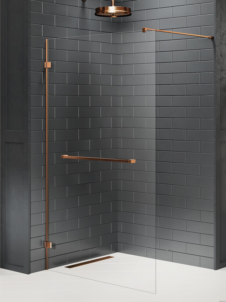 Model Avexa Copper Brushed charakteryzuje się eleganckimi miedzianymi akcentami o szczotkowanym wykończeniu. Kabina wyposażona jest w 8mm hartowane szkło z ochronną powłoką Active Shield. Model zawiera relingowy wieszak, który świetnie nadaje się do przechowywania ręcznika. Kolekcja objęta jest 7-letnią gwarancją. Kabina prysznicowa może być zainstalowana zarówno z brodzikiem, jak i bez niego, a także dostępna jest opcja wykonania na zamówienie.