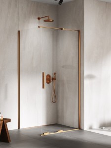 Model Smart Copper Brushed charakteryzuje się eleganckimi, miedzianymi detalami z efektem szczotkowania. Kabiny prysznicowe zawierają bezpieczne, 8mm hartowane szkło z ochronną powłoką Active Shield 2.0. Produkty tej serii posiadają jednostronny dolny system przesuwny oraz punktową prowadnicę u góry. Kabiny Smart Copper Brushed można montować zarówno z brodzikiem, jak i bez niego. Kolekcja objęta jest 7-letnią gwarancją. Dostępna jest również opcja zamówienia na wymiar.