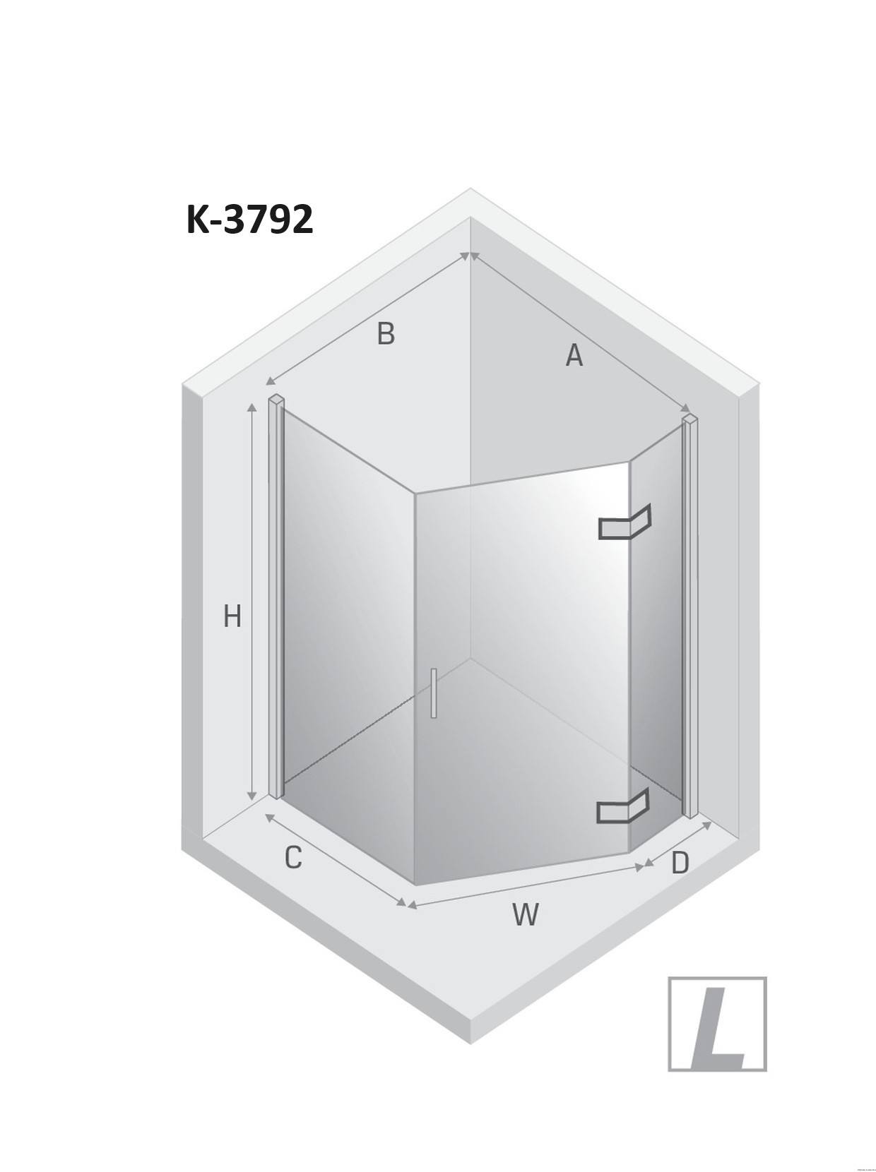 Pięciokątne kabiny z drzwiami otwierającymi się na zewnątrz. Wymiary to 100x80x200 cm.