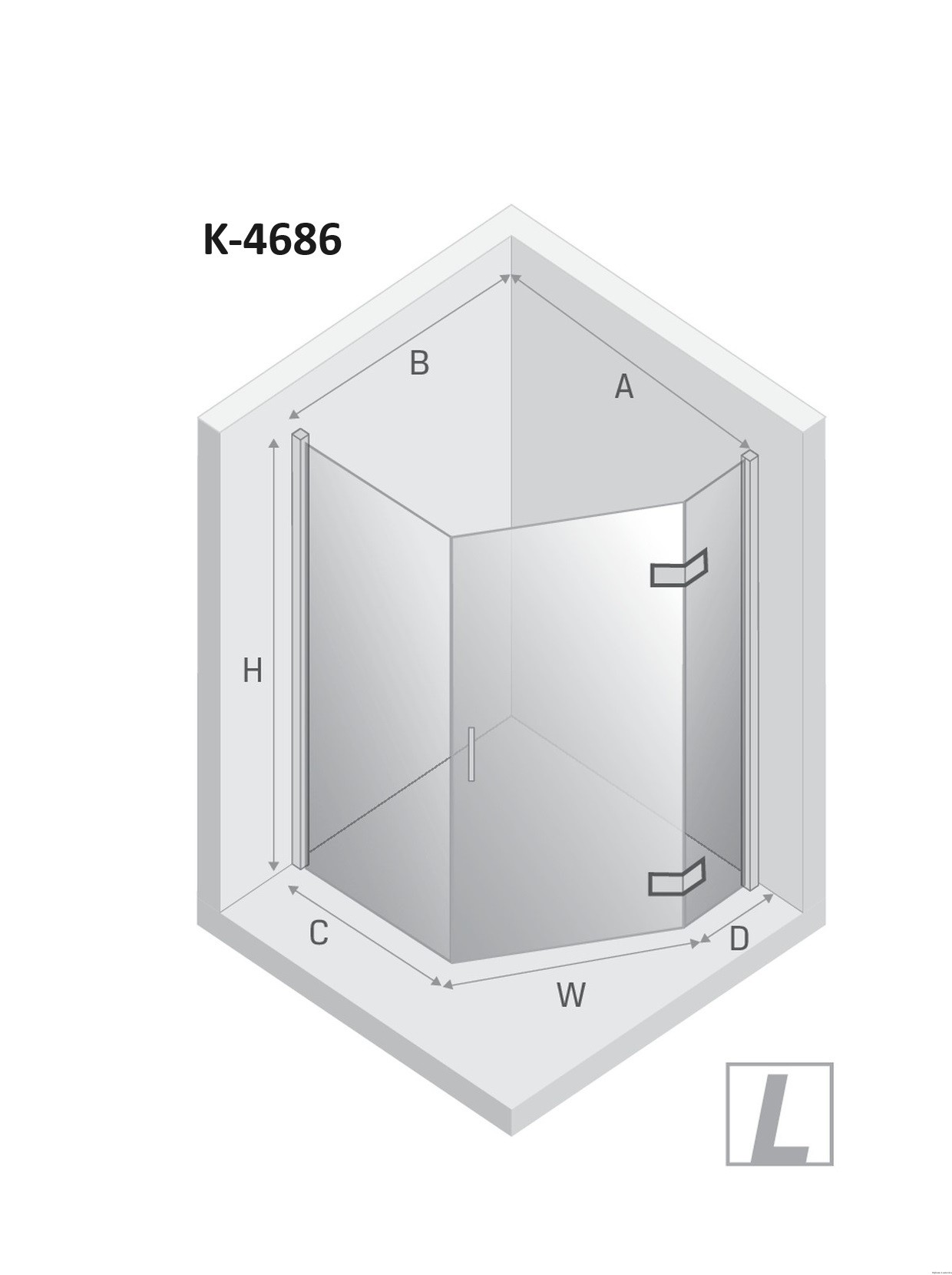 Pięciokątne kabiny z drzwiami otwieranymi na zewnątrz. Wymiary 100x80x200 cm.
