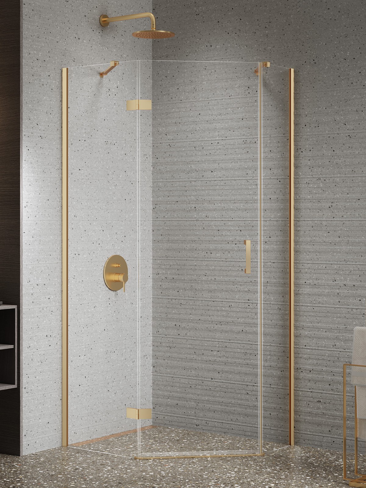 Kabina prysznicowa pięciokątna 100x80x200, seria: Nesta Gold Brushed, kolor: złoty, producent: New Trendy, nr kat: K-4486