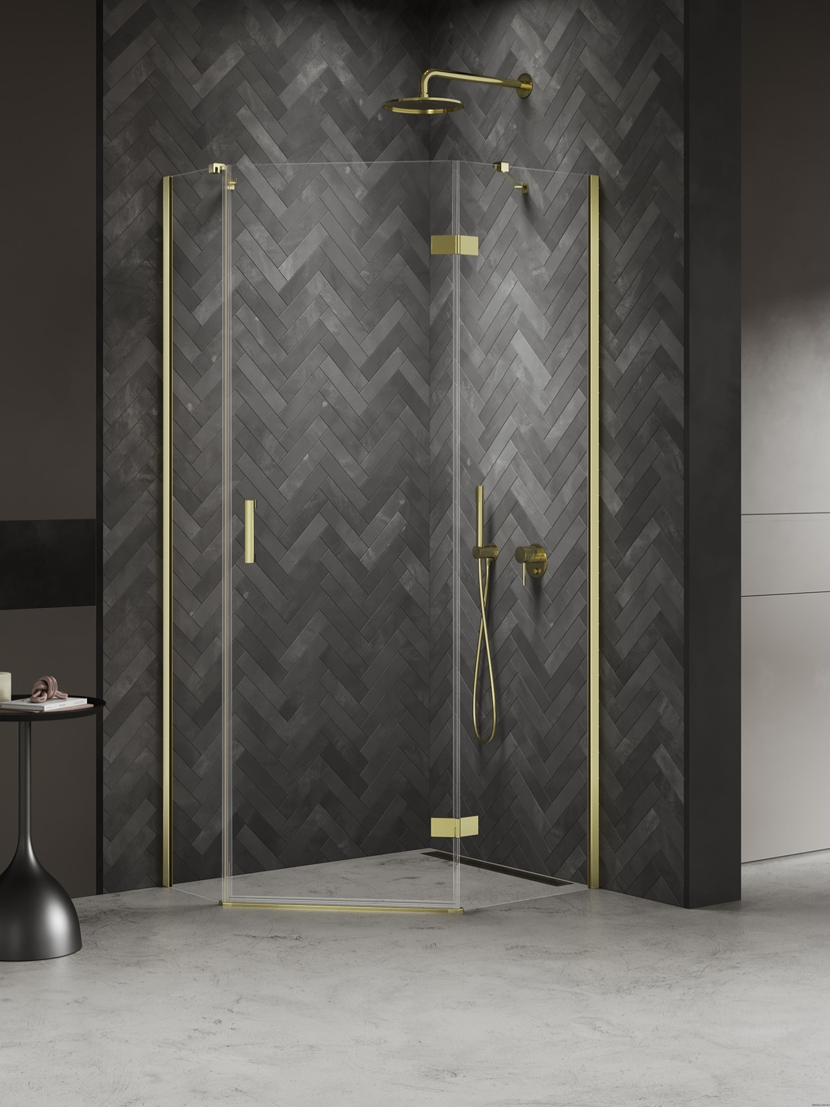 Kabina prysznicowa pięciokątna 100x80x200, seria: Nesta Light Gold, kolor: złoty, producent: New Trendy, nr kat: K-4589