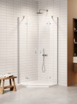 Kabiny o pięciokątnym kształcie, z drzwiami otwierającymi się na zewnątrz. Dostępne w rozmiarach 80x80x200 cm oraz 100x80x200 cm.