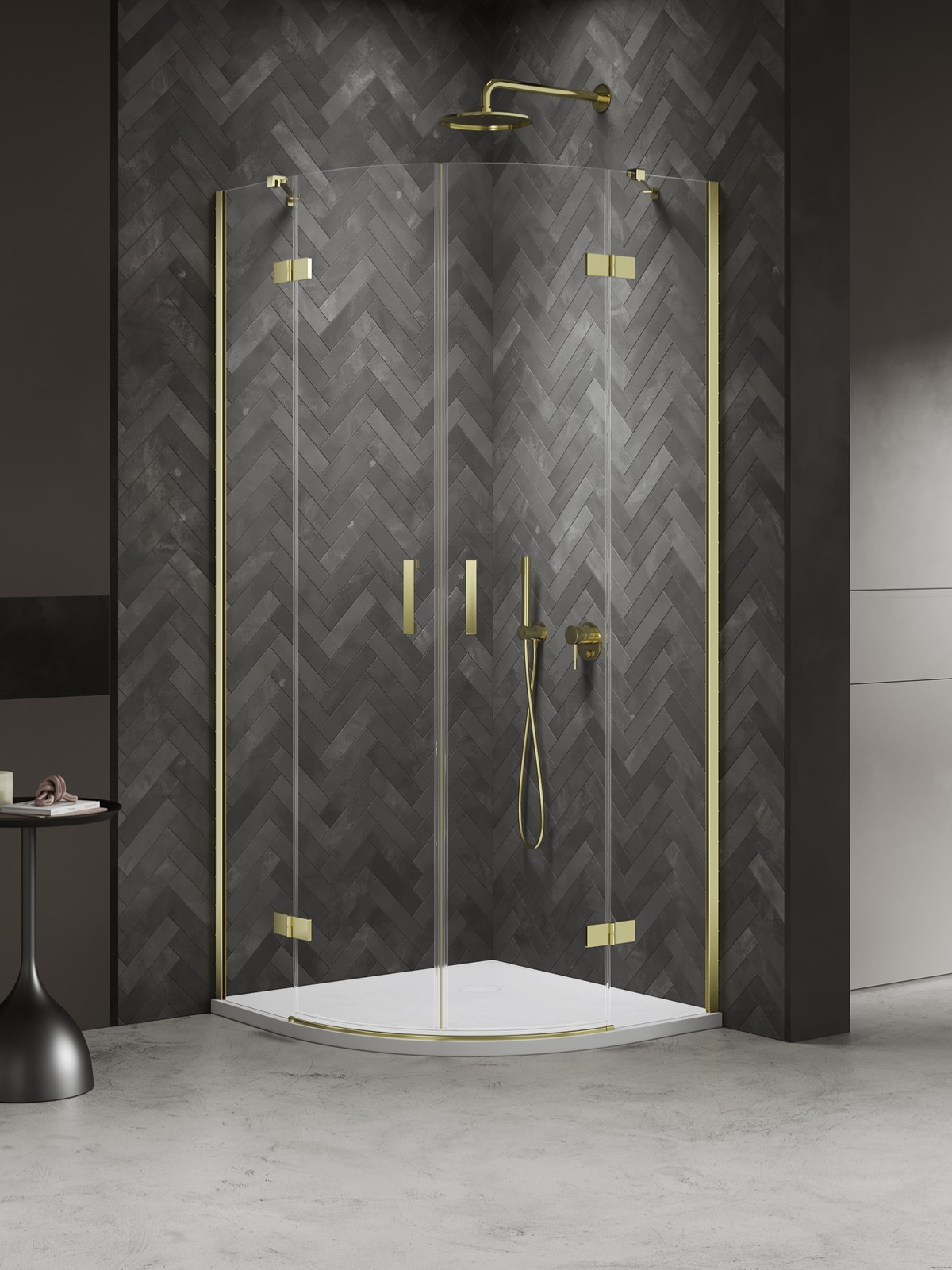 Kabina prysznicowa półokrągła 90x90x200, seria: Nesta Light Gold, kolor: złoty, producent: New Trendy, nr kat: K-4576