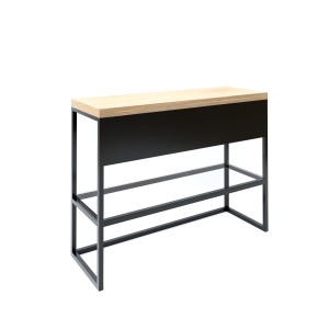 Konstrukcja wykonana jest ze stali, malowana lakierami odpornymi na korozję. Blat wykonano z drewna dębowego, odpowiednio zabezpieczono przed wilgocią. Przód konsoli osłonięty jest maskownicą wykonaną z płyty akrylowej. Dodatkowe miejsce do przechowywania stanowi szklana półka o grubości 8mm.