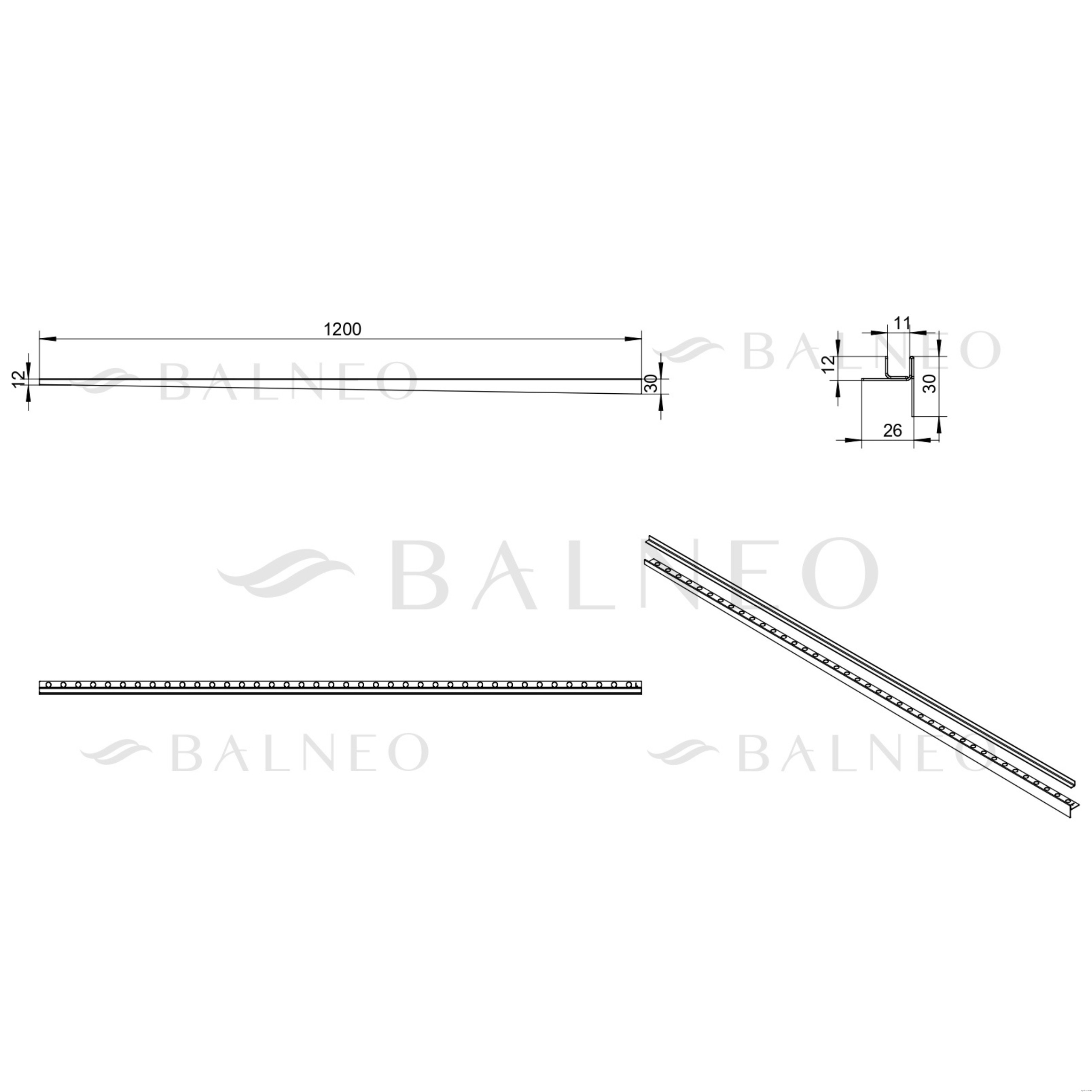 Listwa spadkowa do szkła lewa 120 cm miedziana, producent: Balneo, nr kat: D0101040202-1