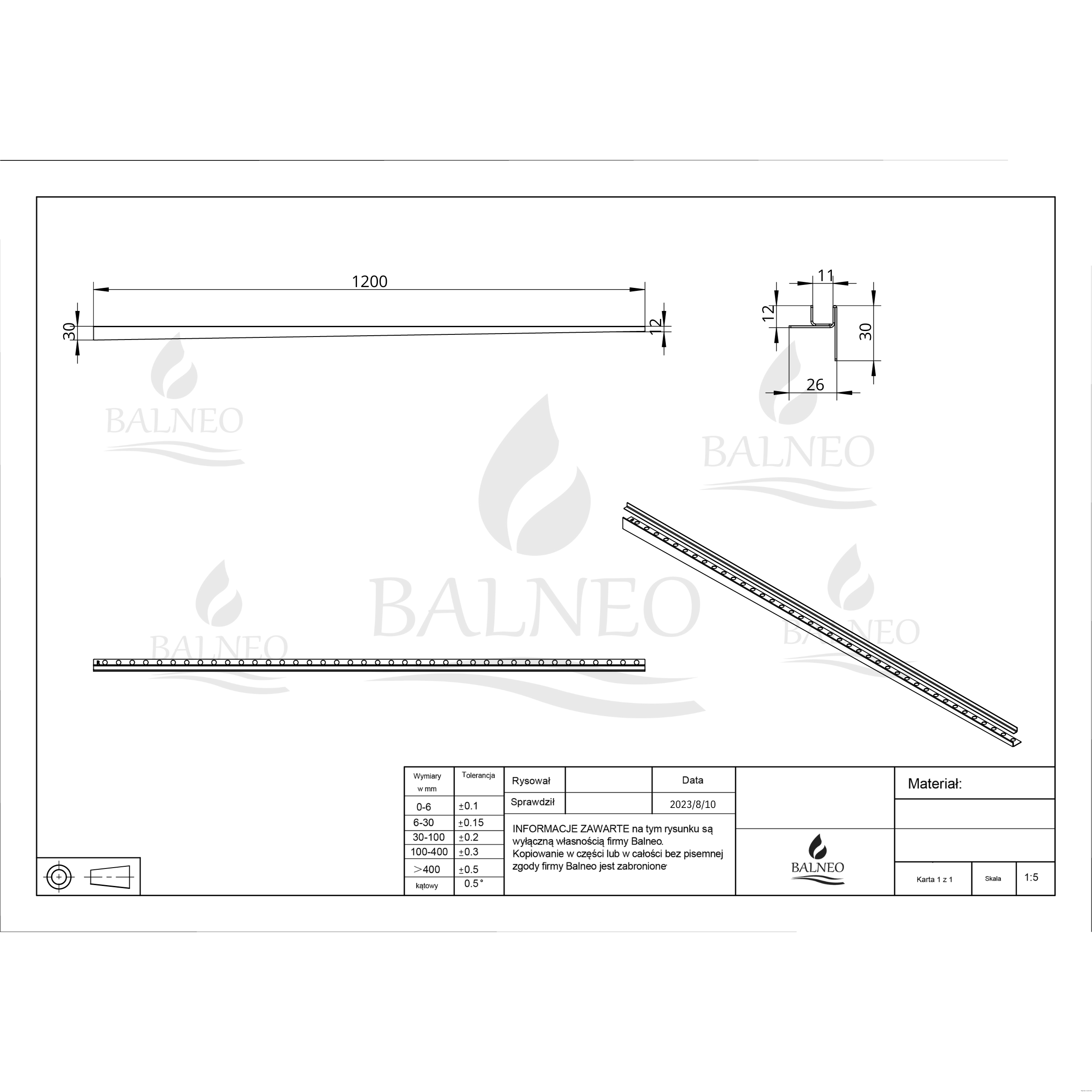 Według normy spadek dla czystej wody powinien wynosić 1%. Listwa BALNEO® wymusza 1,5% spadu co jest idealnym rozwiązaniem dla wody z mydłem. Takie nachylenie jest wystarczające, aby skutecznie odprowadzać wodę z kabiny prysznicowej do rury odpływowej, minimalizując ryzyko zalewania łazienki i zapewniając bezpieczeństwo użytkowników. Dzięki listwie, spadek pod prysznicem jest równomiernie rozłożony, co pozwala na skuteczne działanie odpływu.