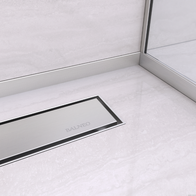 Lista spadkowa przyścienna wykonana jest ze stali nierdzewnej, co gwarantuje nie tylko estetyczny wygląd, ale również odporność na wilgoć oraz trwałość. Brak ostrych krawędzi zapewnia bezpieczeństwo użytkowania, a możliwość docięcia sprawia, że można ją łatwo dopasować do różnych wymiarów brodzika czy kabiny prysznicowej.