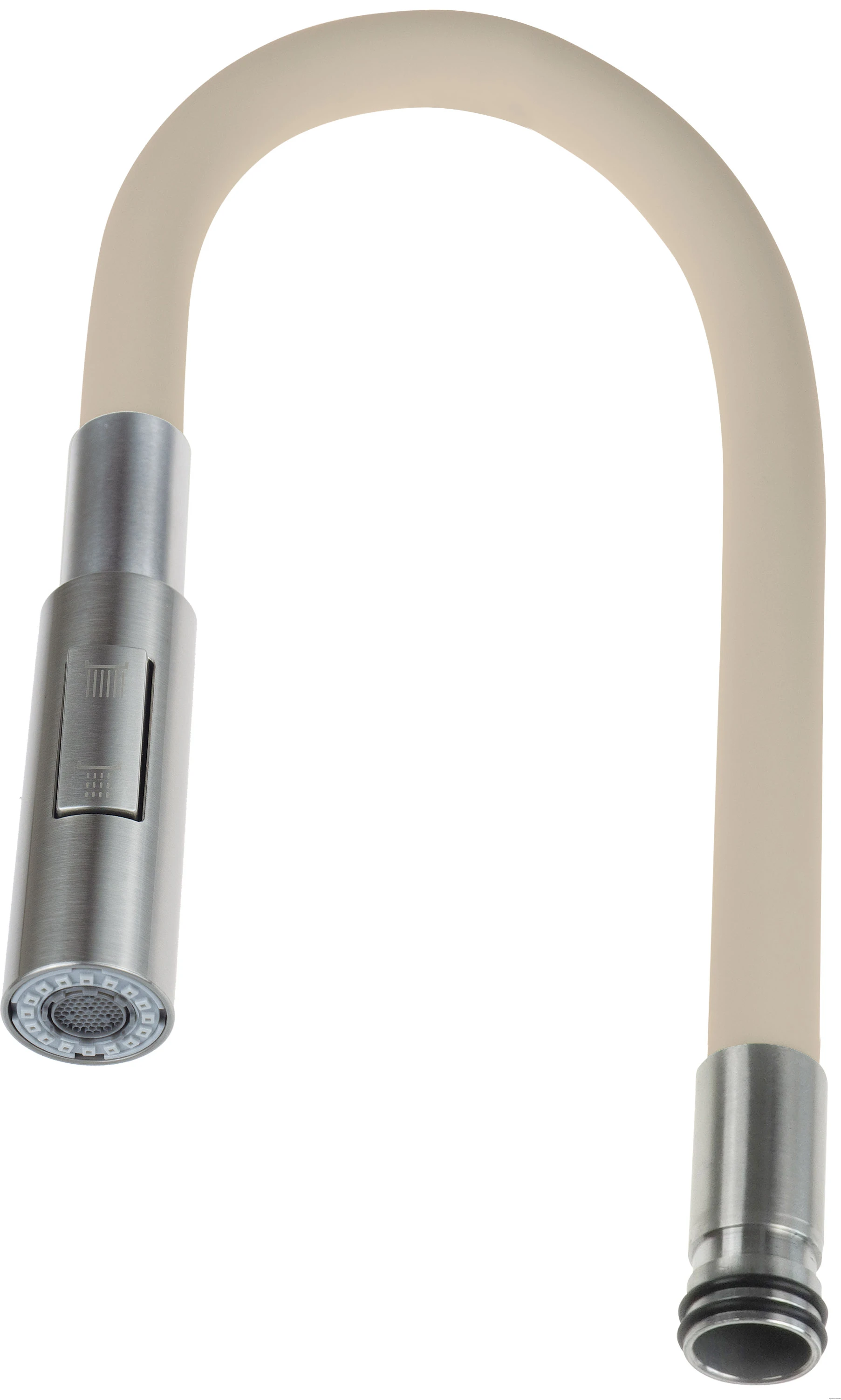 Elastyczna wylewka wykonana z wysokiej jakości silikonu to praktyczne i nowoczesne rozwiązanie, które doskonale sprawdzi się w codziennym użytkowaniu. Zakończona jest funkcjonalną słuchawką z możliwością przełączania między dwoma strumieniami wody: napowietrzonym oraz deszczowym. Strumień napowietrzony idealnie nadaje się do codziennego zmywania, natomiast tryb deszczowy świetnie sprawdza się przy płukaniu warzyw i owoców, zapewniając delikatne, ale skuteczne oczyszczanie. Elastyczna konstrukcja ułatwia manewrowanie wylewką, co znacząco zwiększa komfort pracy. Produkt pasuje do serii baterii zlewozmywakowych LUNO.