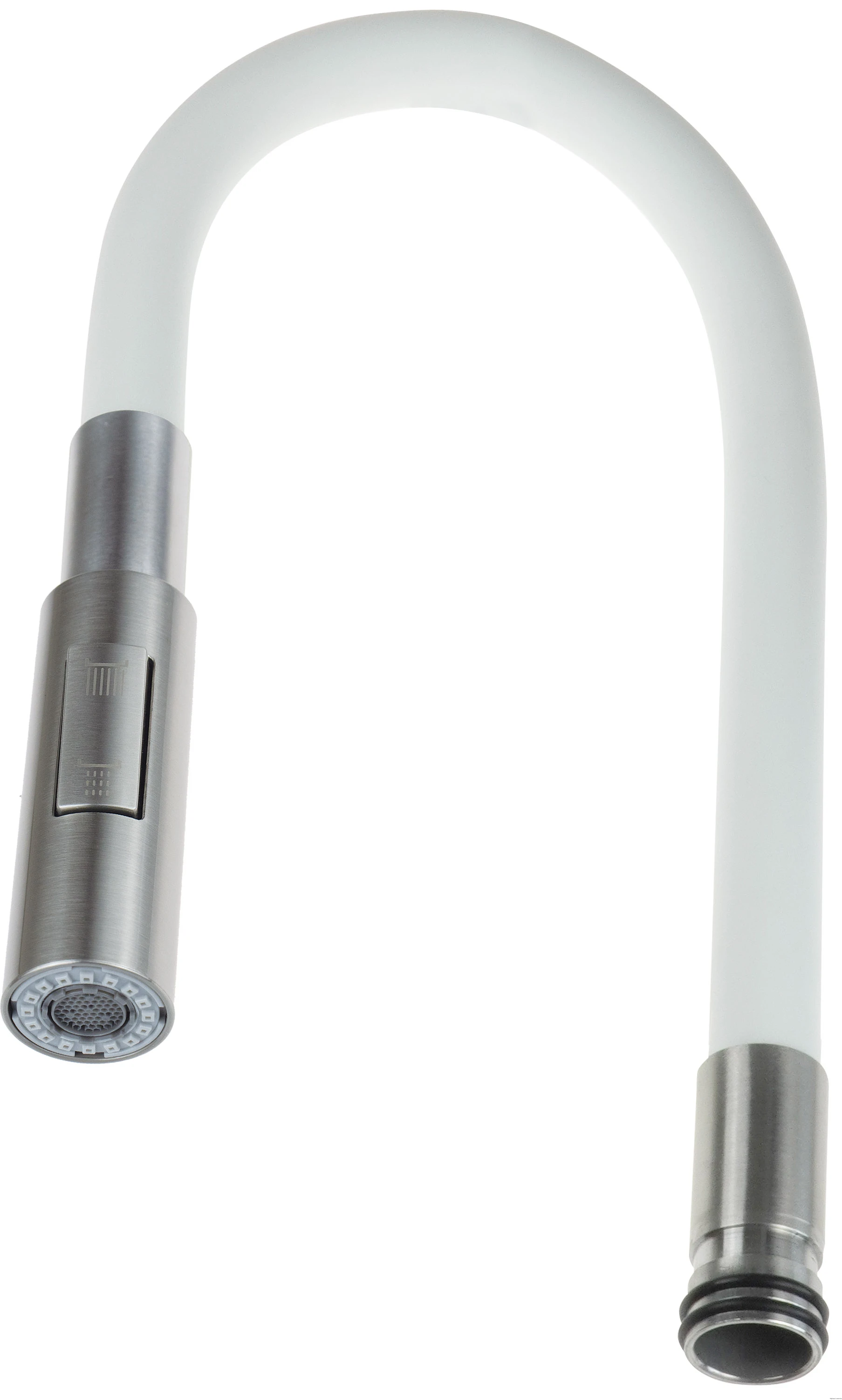 Elastyczna wylewka wykonana z wysokiej jakości silikonu to praktyczne i nowoczesne rozwiązanie, które doskonale sprawdzi się w codziennym użytkowaniu. Zakończona jest funkcjonalną słuchawką z możliwością przełączania między dwoma strumieniami wody: napowietrzonym oraz deszczowym. Strumień napowietrzony idealnie nadaje się do codziennego zmywania, natomiast tryb deszczowy świetnie sprawdza się przy płukaniu warzyw i owoców, zapewniając delikatne, ale skuteczne oczyszczanie. Elastyczna konstrukcja ułatwia manewrowanie wylewką, co znacząco zwiększa komfort pracy. Produkt pasuje do serii baterii zlewozmywakowych LUNO.