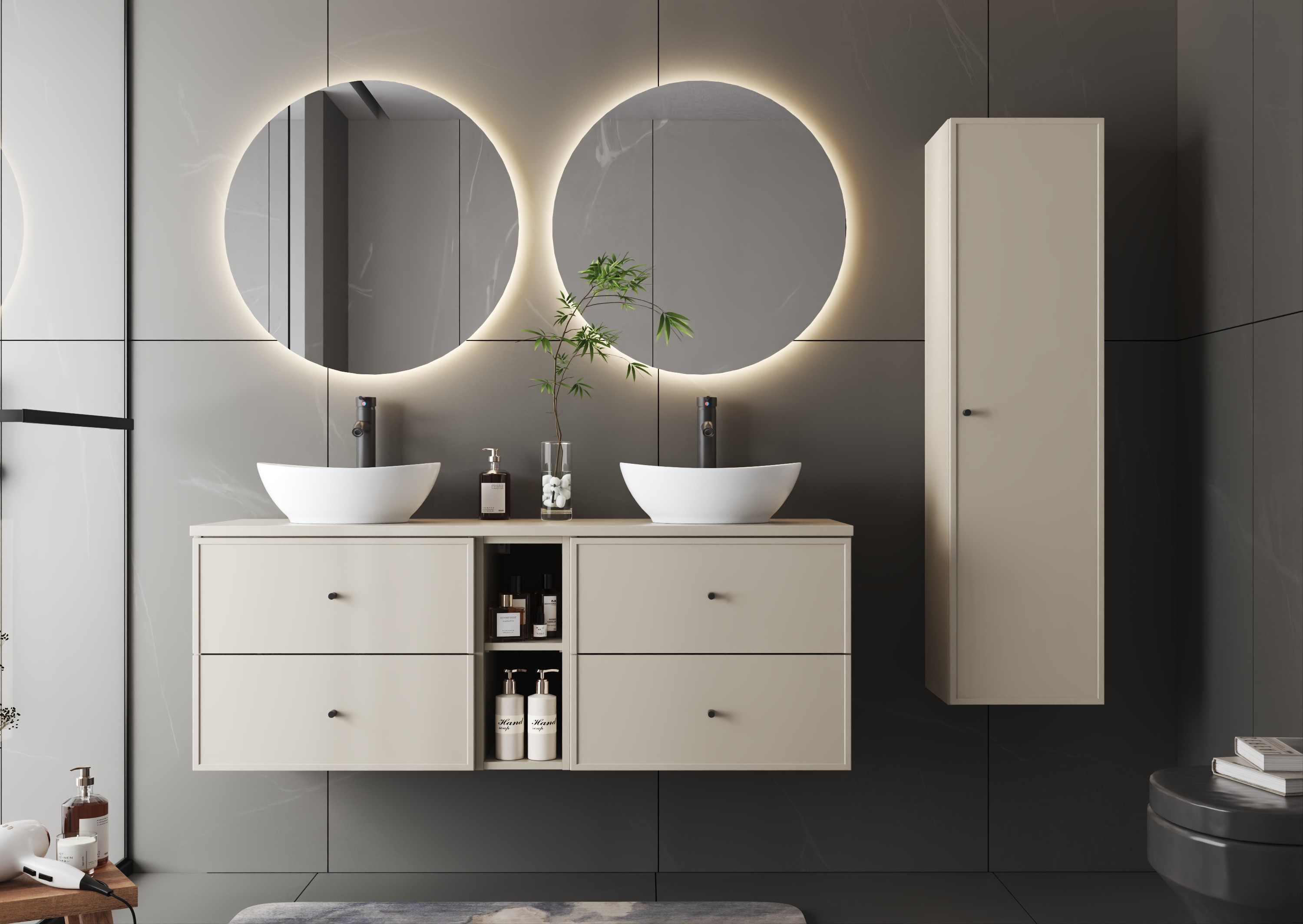 Szafka MARCO-03 130 cm Kaszmir zachwyca subtelnym, eleganckim kolorem, który wprowadza do łazienki ciepły i przytulny klimat.