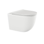 Miska wc podwieszana,bezkołnierzowa. Deska wolnoopadająca w zestawie: tak, slim twarda, z systemem łatwego wypinania. Kolor: biały. Kształt: okrągły. Odpływ wody: poziomy. Spłukiwanie: 4 l. Zestaw montażowy w komplecie: tak. Wymiary: 500 x 370 x 310 mm
