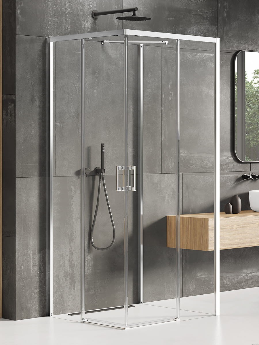 Model Prime posiada eleganckie, chromowane detale o wykończeniu w połysku. Wyposażony w system przesuwny, zapewniający płynne otwieranie drzwi. Zastosowana technologia wyeliminowała konieczność montażu dolnej bieżni. Prime posiada bezpieczne, hartowane szyby o grubości 6mm, z powłoką ochronną Active Shield. Kabiny prysznicowe mogą być montowane zarówno z brodzikiem, jak i bez brodzika. Model jest wyposażony w system szybkiego montażu, który ułatwia łączenie bieżni kabiny z jej profilami przyściennymi. Kolekcja objęta 3-letnim okresem gwarancji. Istnieje możliwość zamówienia produktu także w opcji na wymiar.
