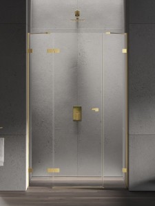 Model Eventa Gold Shine posiada eleganckie, złote detale o wykończeniu w połysku. Drzwi wnękowe, wyposażone w bezpieczne, hartowane szyby o grubości 8mm, z powłoką ochronną Active Shield. W dolnej części drzwi znajduje się rynienka, odprowadzająca wodę z szyby do wewnątrz strefy prysznicowej. Produkt może być instalowany z brodzikiem lub bez brodzika. Kolekcja objęta 7-letnim okresem gwarancji. Istnieje możliwość zamówienia modelu także w opcji na wymiar.