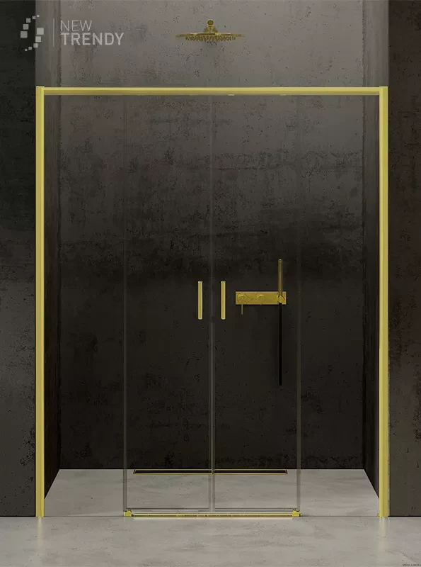 Model Prime Light Gold posiada eleganckie, złote detale o delikatnym połysku. Wyposażony w system przesuwny, zapewniający płynne otwieranie drzwi. Zastosowana technologia wyeliminowała konieczność montażu dolnej bieżni. Prime Light Gold posiada bezpieczne, hartowane szyby o grubości 6mm, z powłoką ochronną Active Shield. Drzwi wnękowe mogą być montowane zarówno z brodzikiem, jak i bez brodzika. Model jest wyposażony w system szybkiego montażu, który ułatwia łączenie bieżni drzwi z ich profilami przyściennymi. Kolekcja objęta 3-letnim okresem gwarancji. Istnieje możliwość zamówienia produktu także w opcji na wymiar.