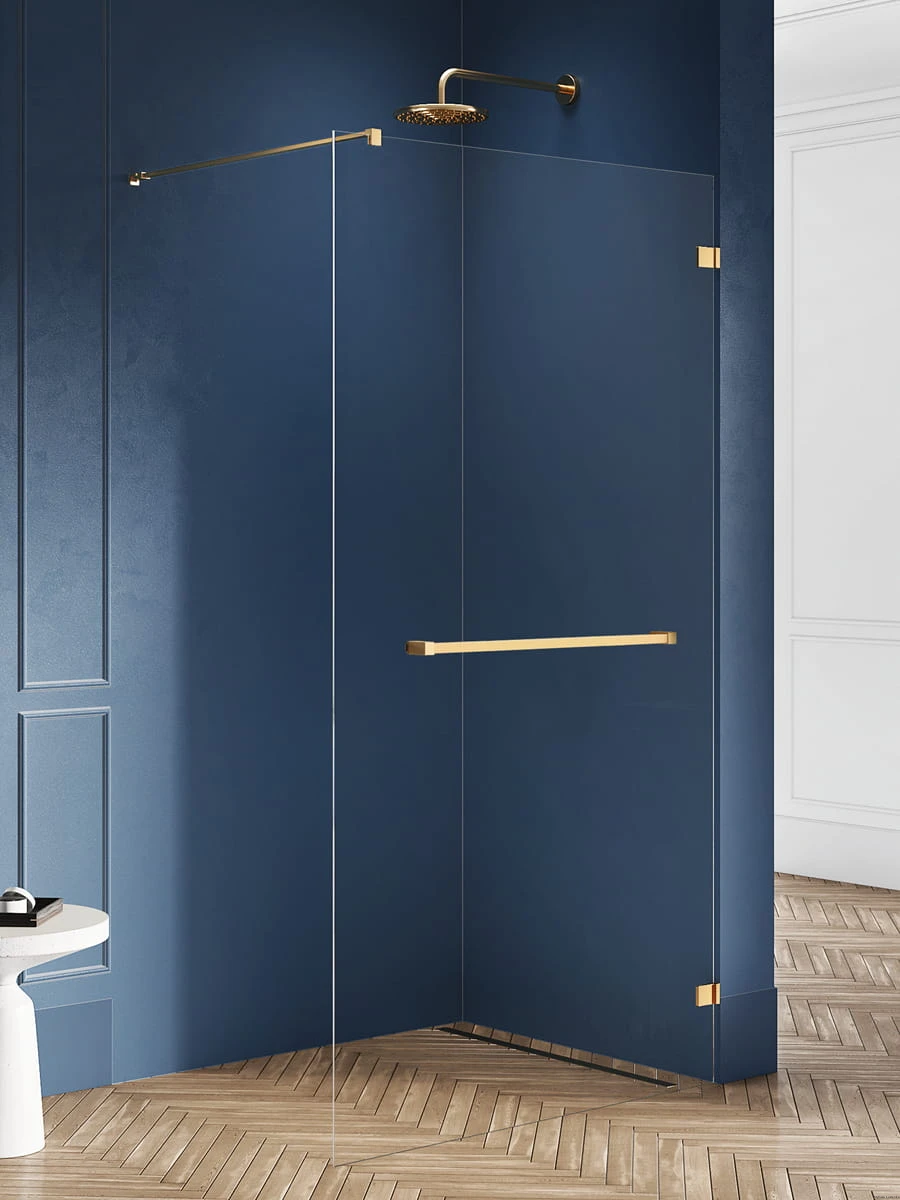 Producent New TrendyKabina Avexa Gold Brushed Walk-In U 80x200 Czyste 8mm Active Shield 2.0 , Nr Kat: Exk-7013, Producent: New Trendy
