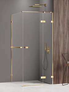 Model Avexa Gold Shine posiada eleganckie detale, złote detale o wykończeniu w połysku. Kabina wyposażona jest w bezpieczne, hartowane szyby o grubości 6mm, z powłoką ochronną Active Shield. Model posiada zamontowany na ściance bocznej wieszak relingowy, doskonały do przechowywania ręcznika czy odzieży. W dolnej części drzwi znajduje się rynienka, odprowadzająca wodę z szyby do wewnątrz strefy prysznicowej. Kolekcja objęta 7-letnim okresem gwarancji. Kabina prysznicowa może być montowana zarówno z brodzikiem, jak i bez brodzika. Istnieje możliwość zamówienia produktu także w opcji na wymiar.