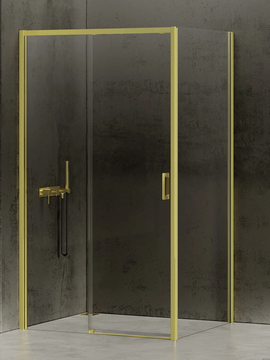 Model Prime Light Gold posiada eleganckie, złote detale o delikatnym połysku. Wyposażony w system przesuwny, zapewniający płynne otwieranie drzwi. Zastosowana technologia wyeliminowała konieczność montażu dolnej bieżni. Prime Light Gold posiada bezpieczne, hartowane szyby o grubości 6mm, z powłoką ochronną Active Shield. Kabiny mogą być montowane zarówno z brodzikiem, jak i bez brodzika. Model jest wyposażony w system szybkiego montażu, który ułatwia łączenie bieżni drzwi z ich profilami przyściennymi. Kolekcja objęta 3-letnim okresem gwarancji. Istnieje możliwość zamówienia produktu także w opcji na wymiar.