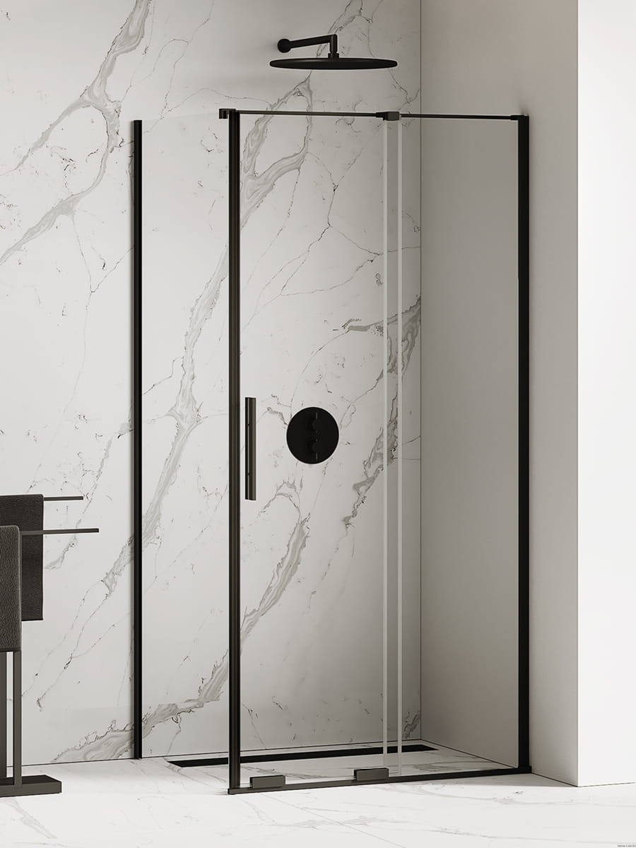 Model Smart Black posiada eleganckie, czarne detale o matowym wykończeniu. Kabiny prysznicowe wyposażone w bezpieczną, hartowaną szybę o grubości 8mm, z powłoką ochronną Active Shield. Produkty tej kolekcji posiadają jedynie dolny system przesuwny, w górnej części znajduje się punktowa prowadnica. Kabiny Smart mogą być instalowane z brodzikiem lub bez brodzika. Kolekcja objęta 7-letnim okresem gwarancji. Istnieje możliwość zamówienia produktu także w opcji na wymiar.