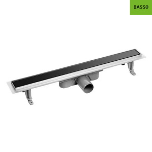 Odwodnienia linowe Basso to innowacyjne połączenie nowoczesności i funkcjonalności w małych łazienkach, gdzie liczy się każdy kawałek przestrzeni. Odpływ wyprodukowany został w Polsce ze stali 304, która odporna jest na czyszczenie silnymi środkami chemicznymi poza chlorem i kwasami, dzięki czemu utrzymanie czystości w łazience jest bardzo proste. Odpływ liniowy Basso w efektownym wykończeniu szkła ma kolor czarny przez co mamy poczucie luksusu i ponadczasowego stylu glamour w swoim domu. Haczyk w zestawie znacznie ułatwia podniesienie rusztu w celu usunięcia wszelkich zanieczyszczeń. Wyjątkową zaletą odwodnienia liniowego jest jego dwustronność, gdzie według potrzeb i gustu może być efektownym czarnym szkłem lub po odwróceniu i wklejeniu płytki wykończeniem komponującym się z resztą podłogi.