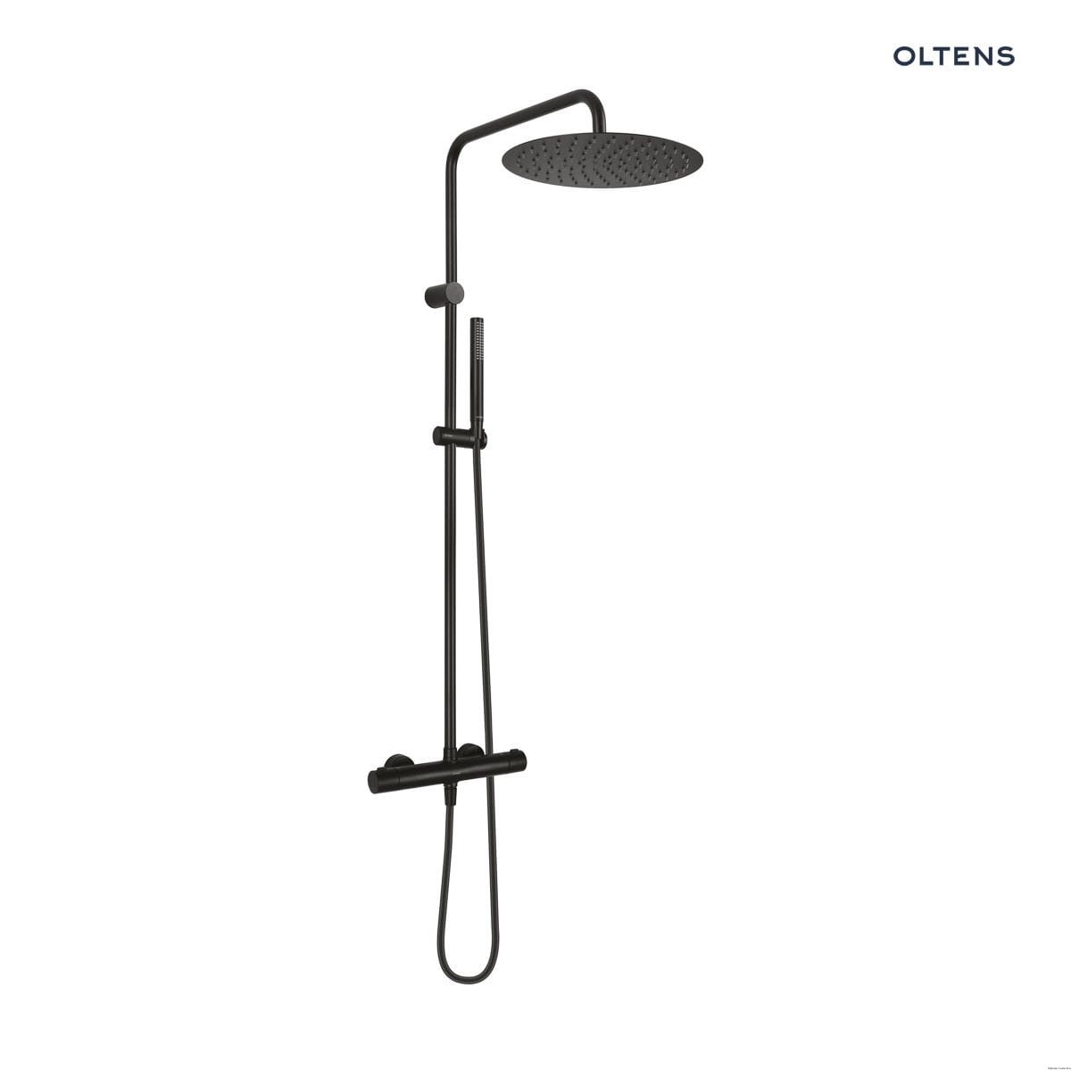 Oltens Boran zestaw prysznicowy termostatyczny z deszczownicą okrągłą czarny mat 36502300