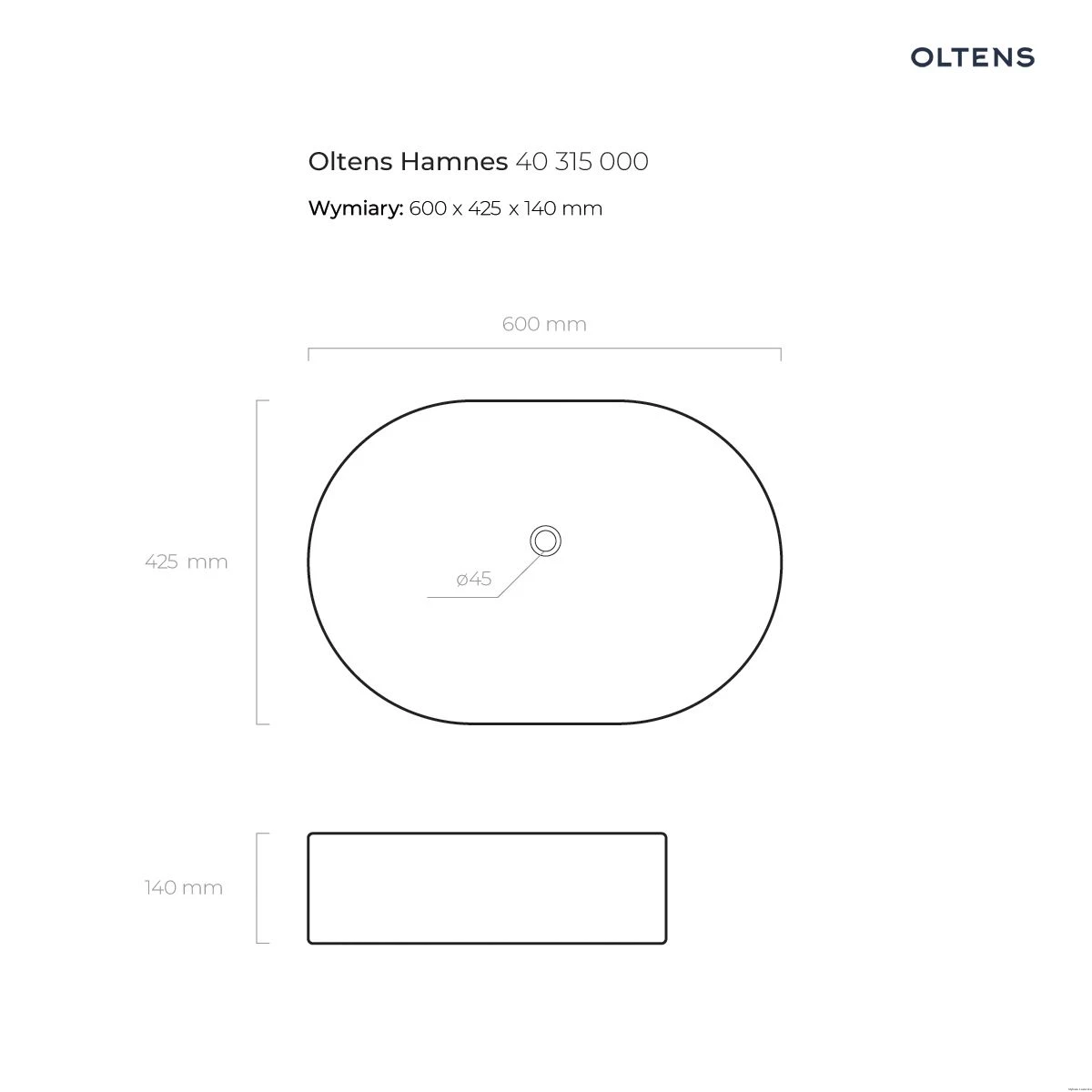 Oltens Hamnes umywalka 60x42,5 cm nablatowa owalna biała 40315000