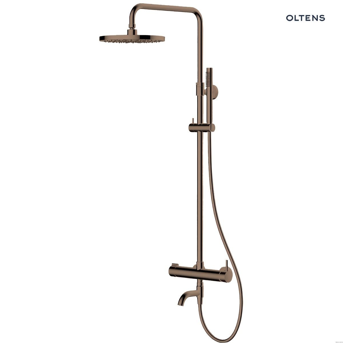 Oltens Molle Numa zestaw wannowo-prysznicowy ścienny z deszczownicą miedź szczotkowana 36506610